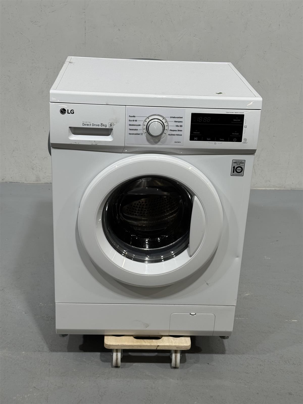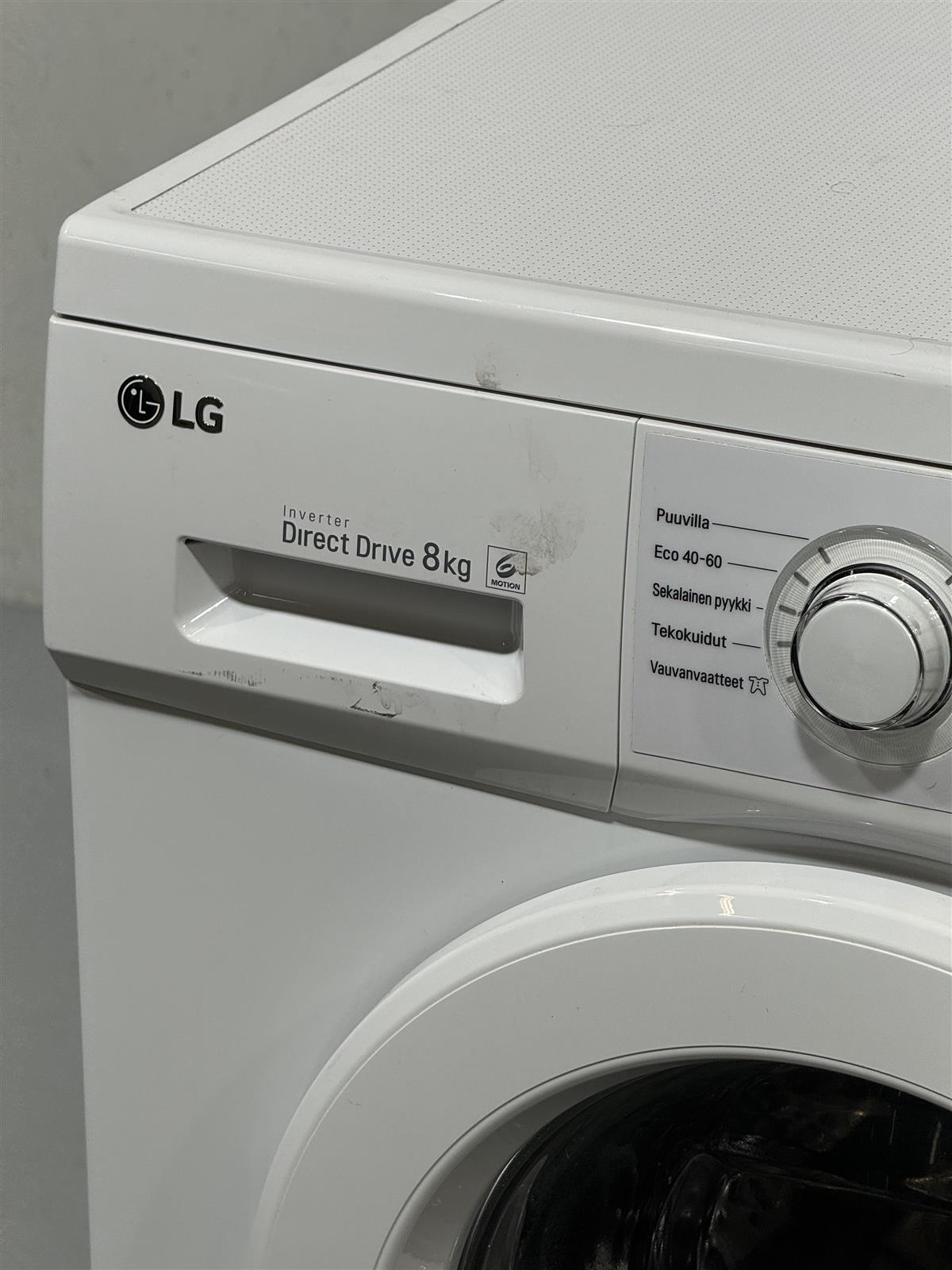 LG:n Direct Drive 8kg pesukone tarjoaa tehokkaan pesukokemuksen. Sen kapasiteetti riittää hyvin isonkin perheen tarpeisiin, ja useat pesuohjelmat tekevät siitä monipuolisen valinnan erilaisille tekstiileille.