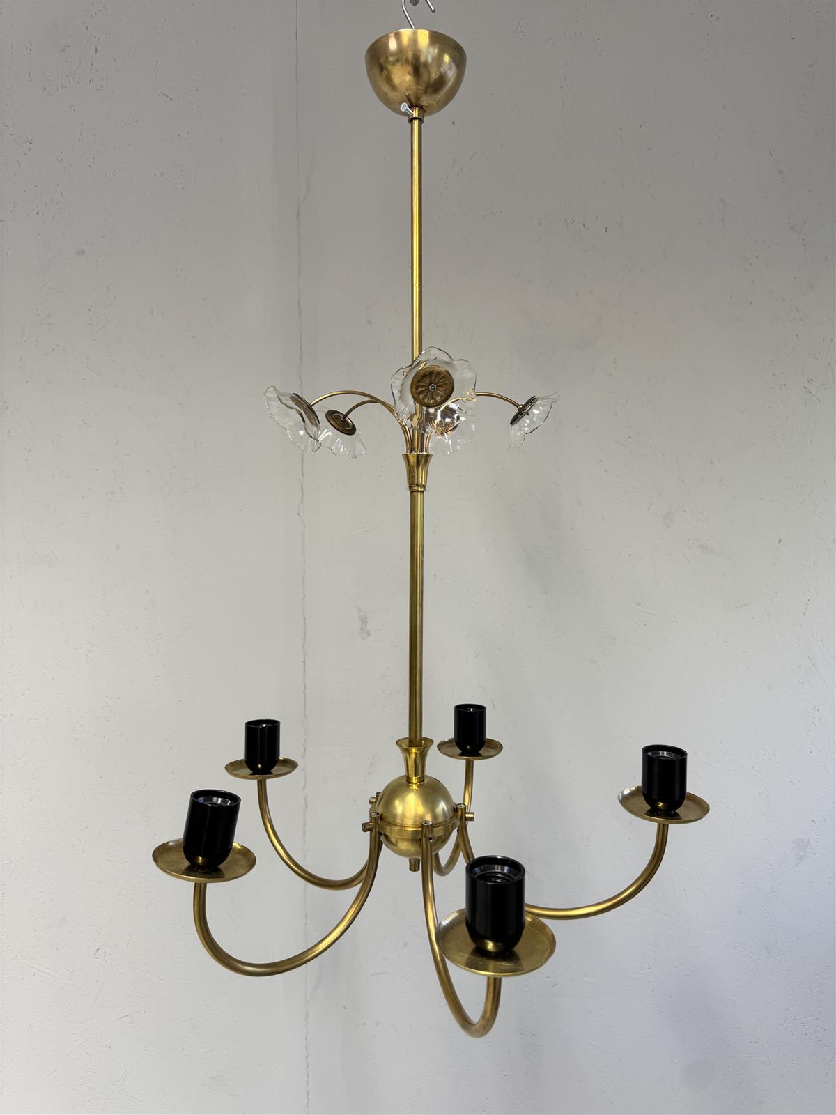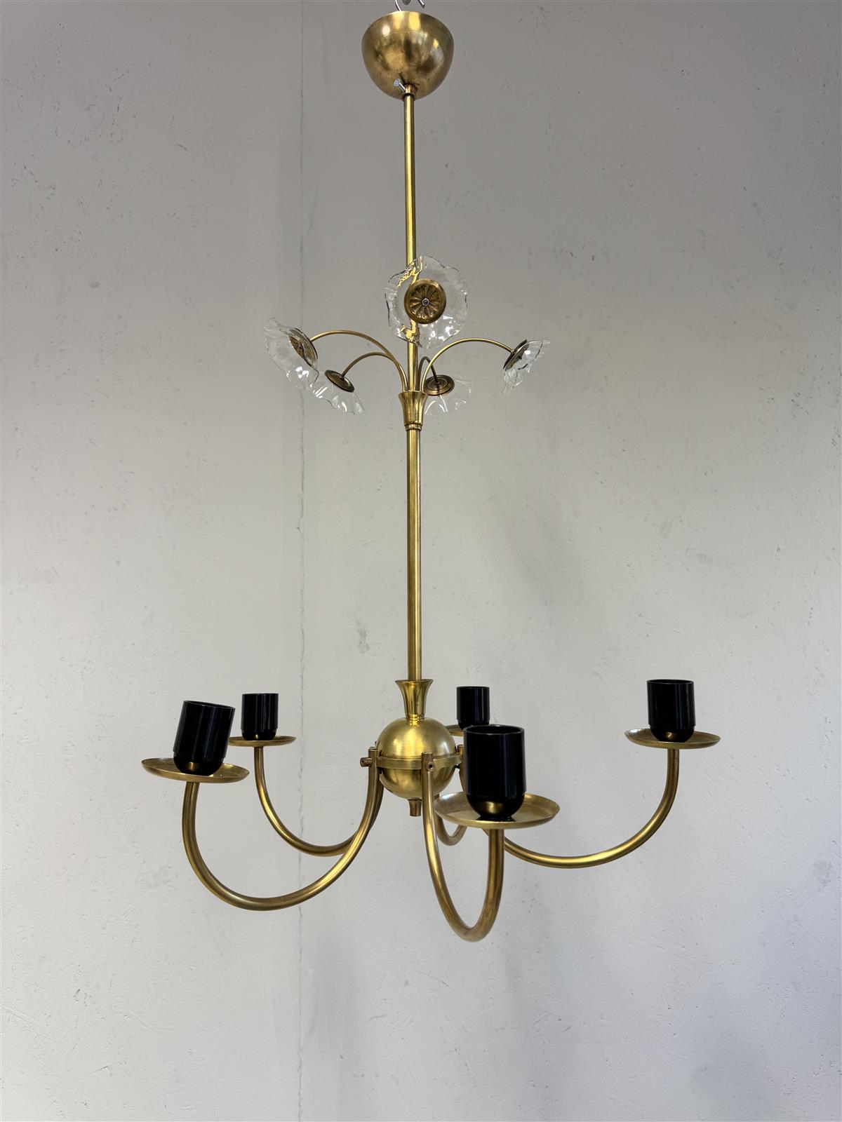 Tyylikäs kattokruunu, jossa on viisi haaraa ja mustat lampunpidikkeet. Harvinainen Lisa Pape-Johansson valaisin arviolta 40 lukua.