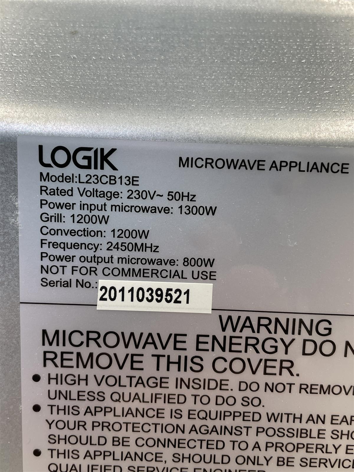 Logik L23CB13E mikroaaltouuni, jossa on 800W teho ja 23 litran kapasiteetti. Laite on varustettu grillitoiminnolla ja konvektiotoiminnolla.
