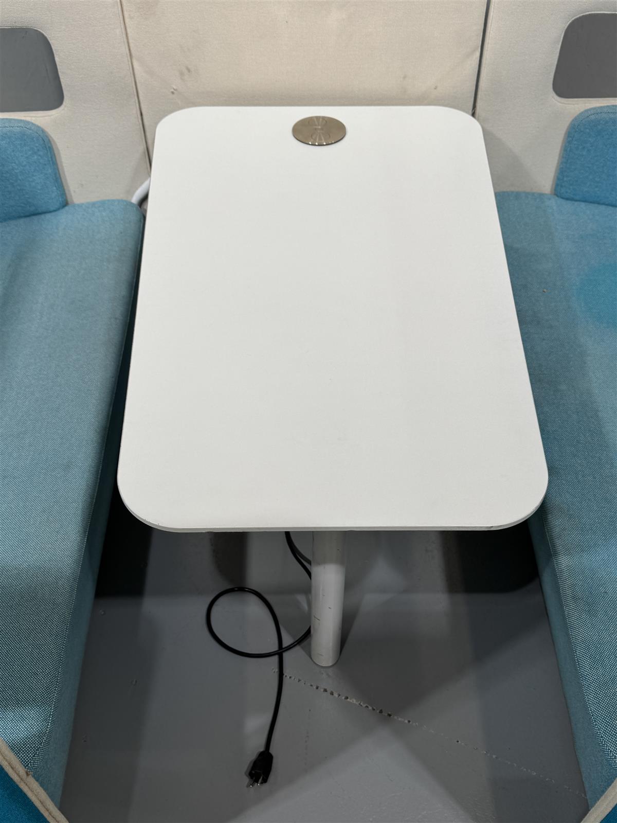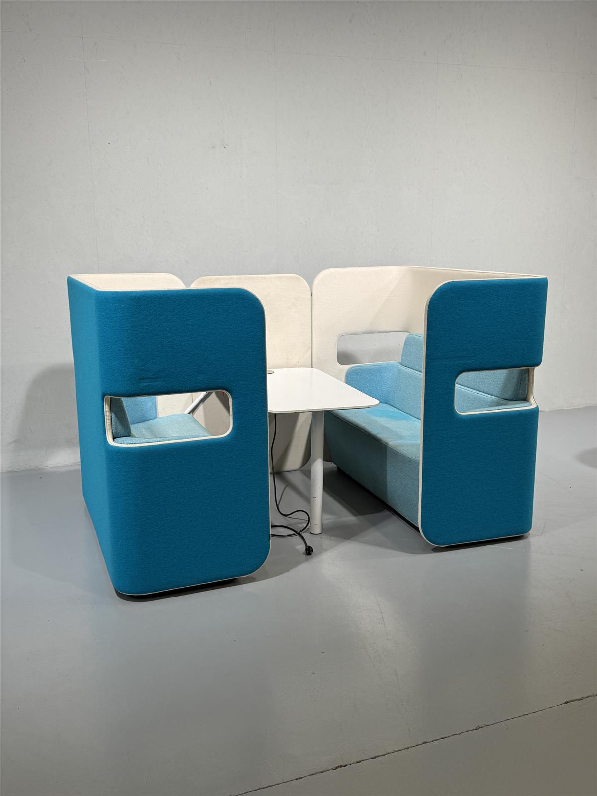 Tyylikäs Martela PodMeeting -kokonaisuus, joka koostuu kahdesta vastakkain olevasta sohva istuimesta ja keskellä olevasta työpöydästä, jossa sähköpiste. Kokonaisuus on suunniteltu tarjoamaan yksityisyyttä ja mukavuutta esimerkiksi toimistoympäristöön. Pöydässä on integroitu sähköpistoke, joka mahdollistaa laitteiden lataamisen helposti. Myydään edulliseen hintaan ensin noutavalle.