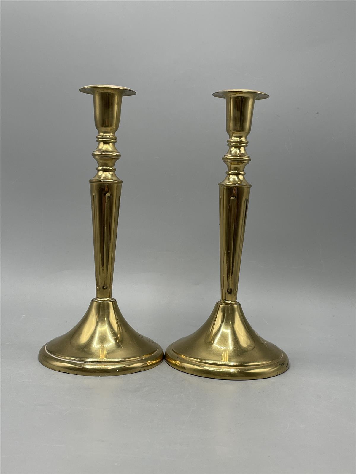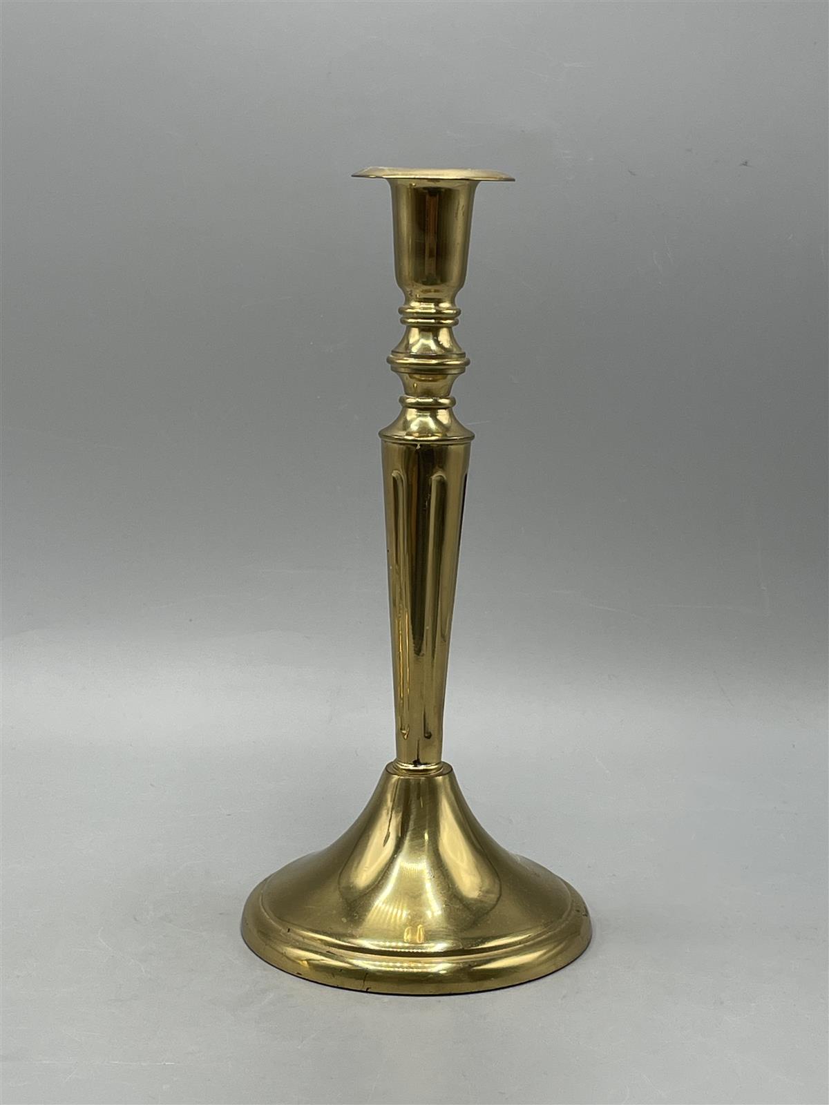 Messinkinen kynttilänjalka pari. Korkeus 24 cm.