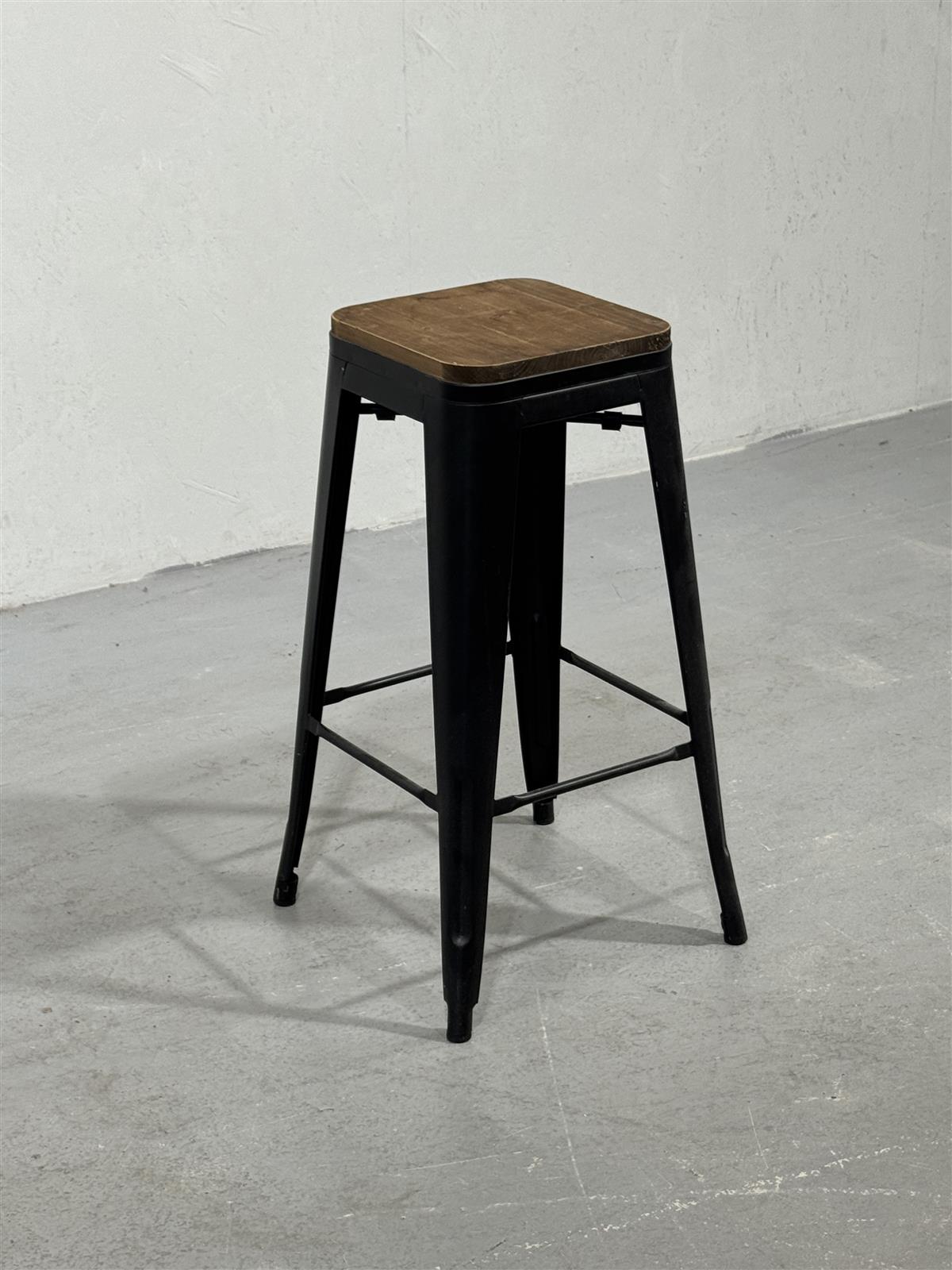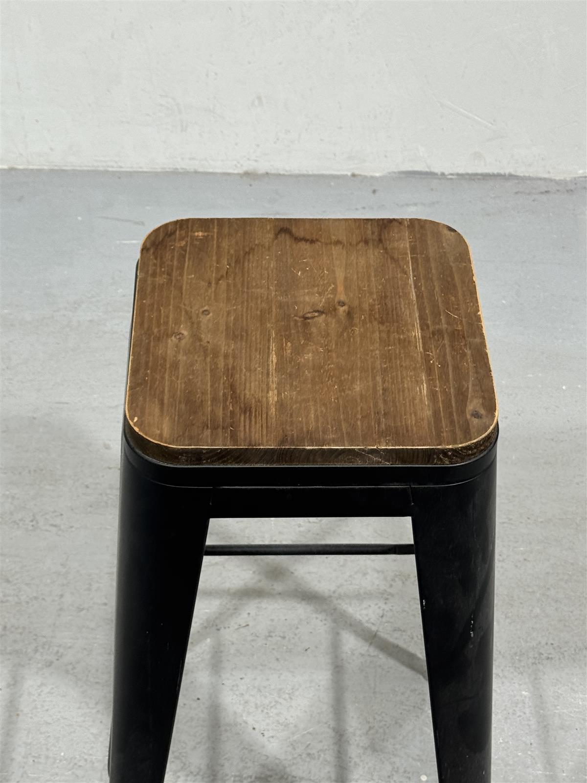Teollisuustyylinen metallijakkara, jossa on puinen istuinosa. Jakkara on suunniteltu kestämään kovaa käyttöä ja se sopii hyvin moderniin sisustukseen tai työtiloihin. Musta metallirunko yhdistyy kauniisti ruskeaan puupintaan, luoden kontrastin, joka on sekä käytännöllinen että esteettinen.