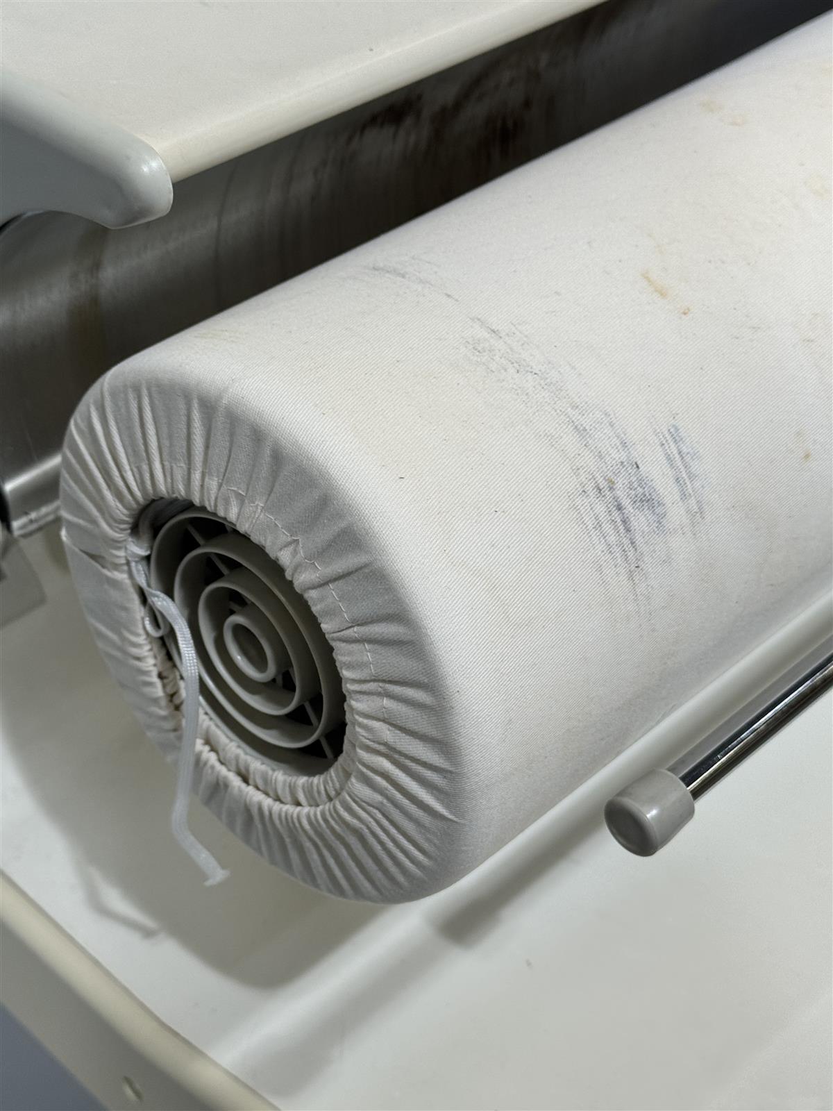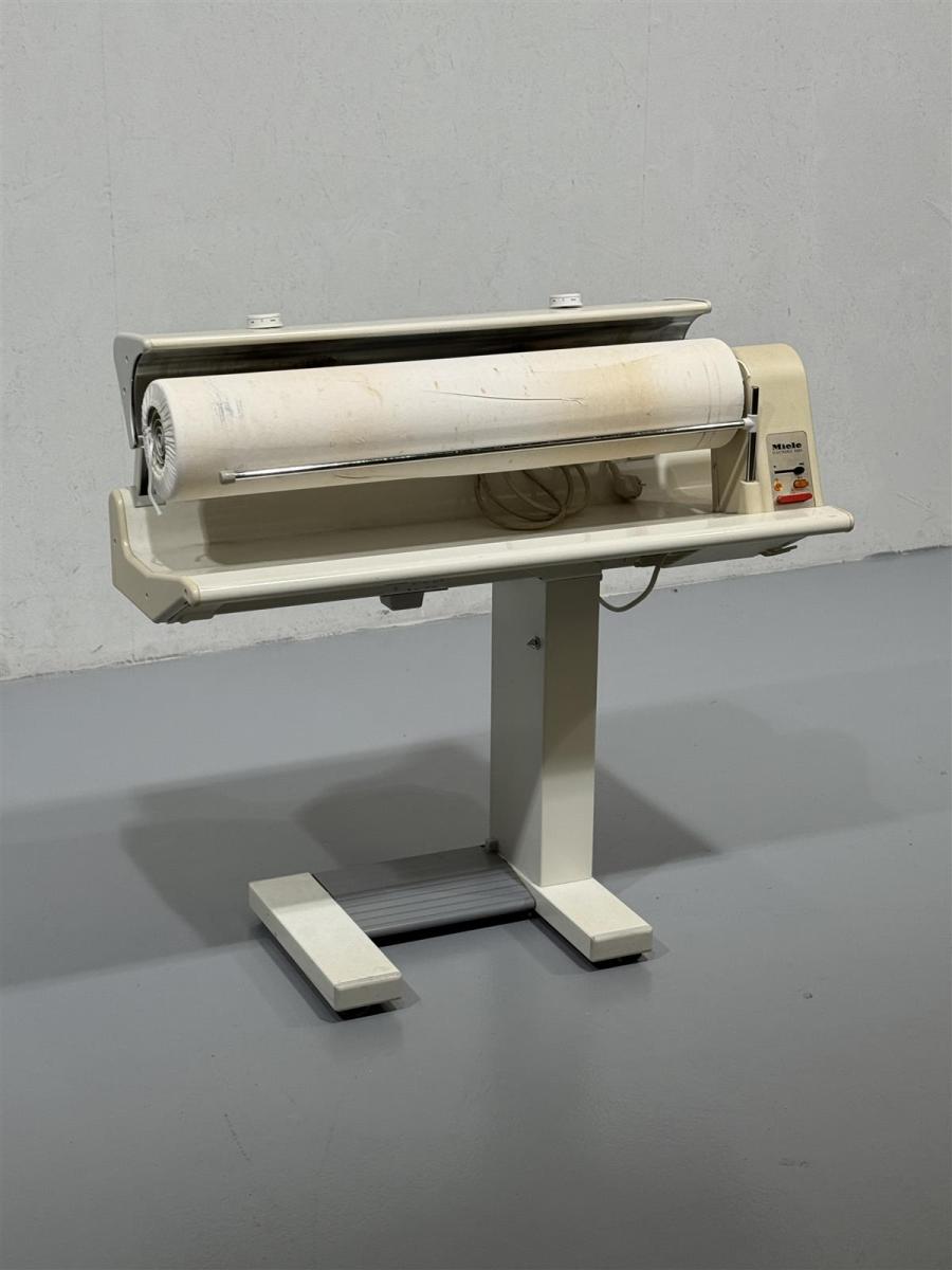Taitettava kansiosa, alla rullat (selkeästi kuluneet). Mankeli toimii jalkapainikkeella, lämmönsäätöä takaosalle päällä ja mankeli automaattisesti painaa kangasta mankeloidessa. Testattu ja toimii.