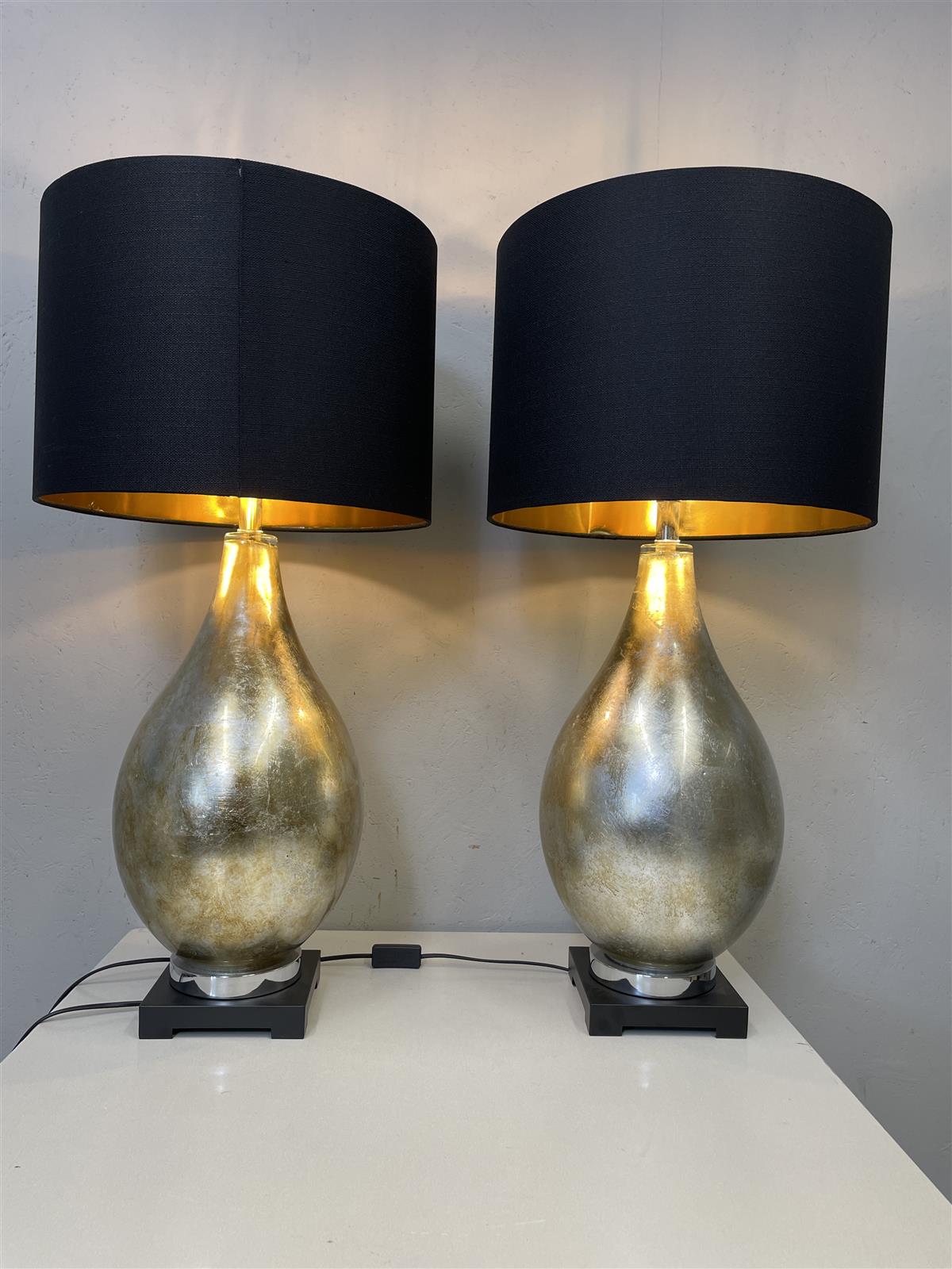 Mindy Brownes Kali tyylikkäät pöytävalaisimet, joissa on kullanvärinen jalka ja musta varjostin. Valaisimet ovat modernia tyyliä, joka tuo mieleen 2000-luvun alun minimalistisen muotoilun. Ne sopivat hyvin erilaisiin sisustuksiin ja luovat pehmeän valaistuksen tilaan.