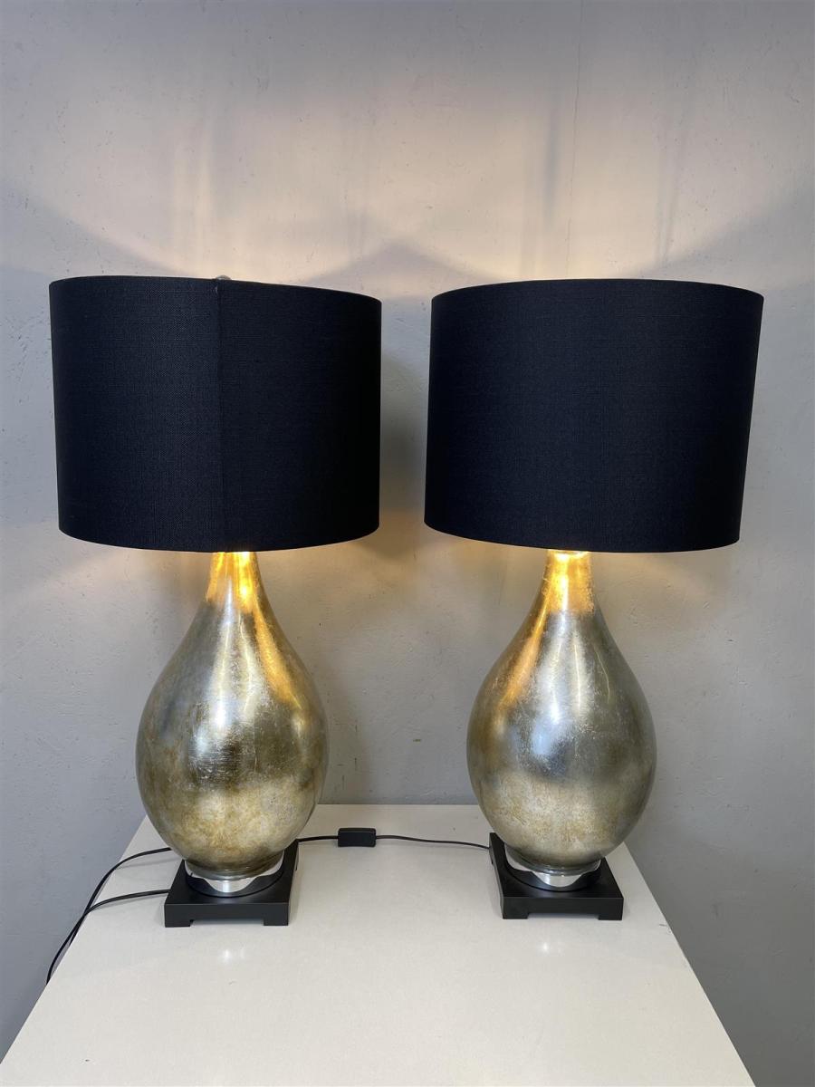 Valaisimet ovat hyvässä kunnossa ilman näkyviä vikoja. Kullanvärinen pinta on kiiltävä ja varjostimet ovat ehjä