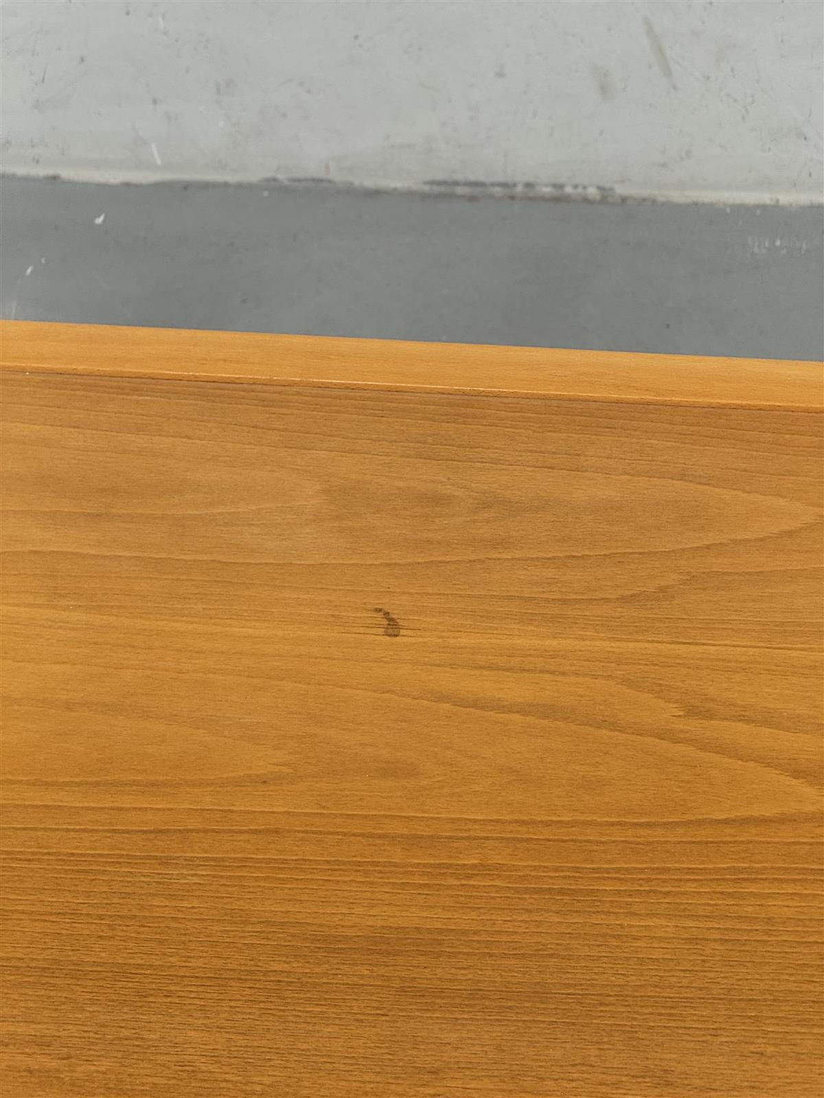 Pöydässä on muutamia pieniä naarmuja ja kulumia, mutta yleisilme on siisti. Pinta on hyvin säilynyt ja pöytä on tukeva.