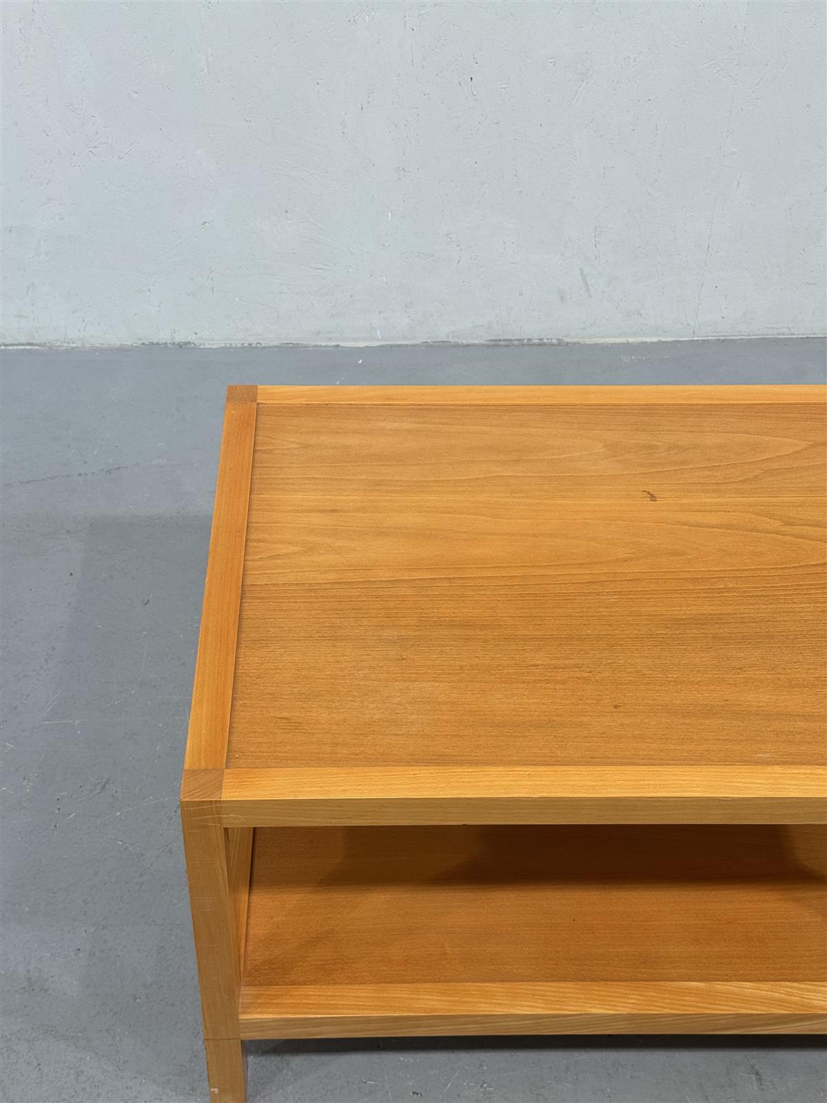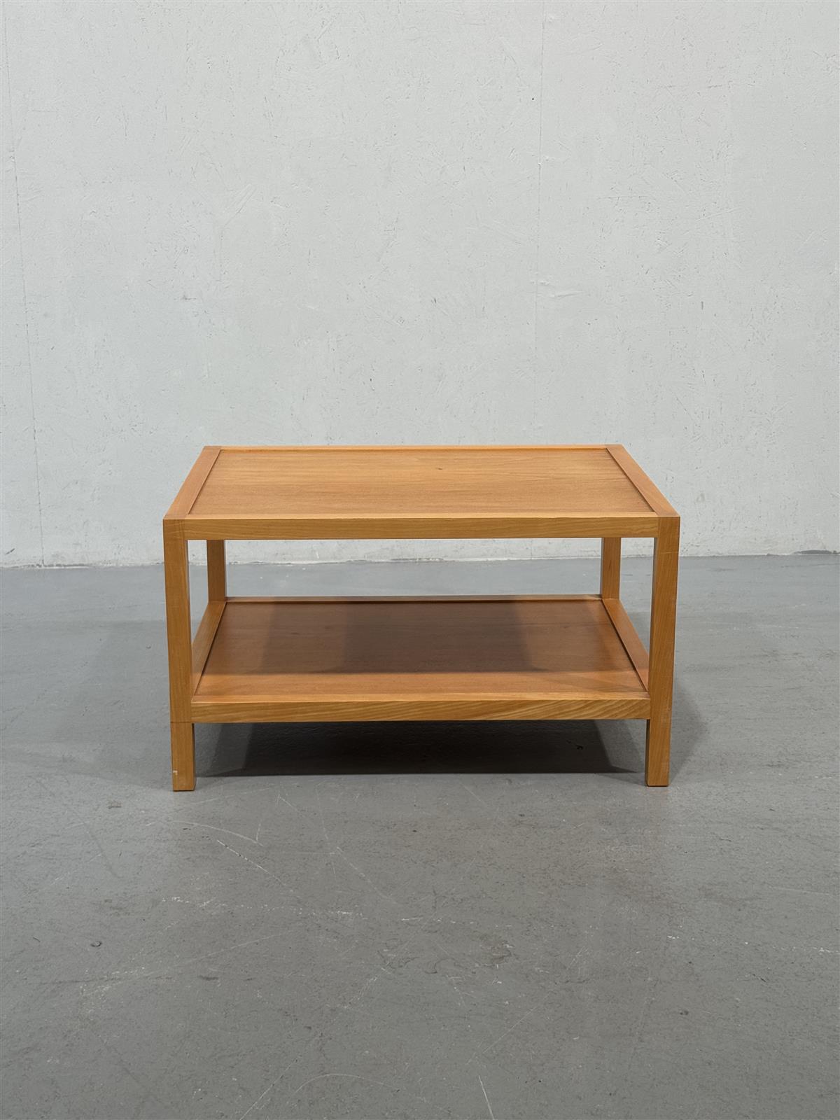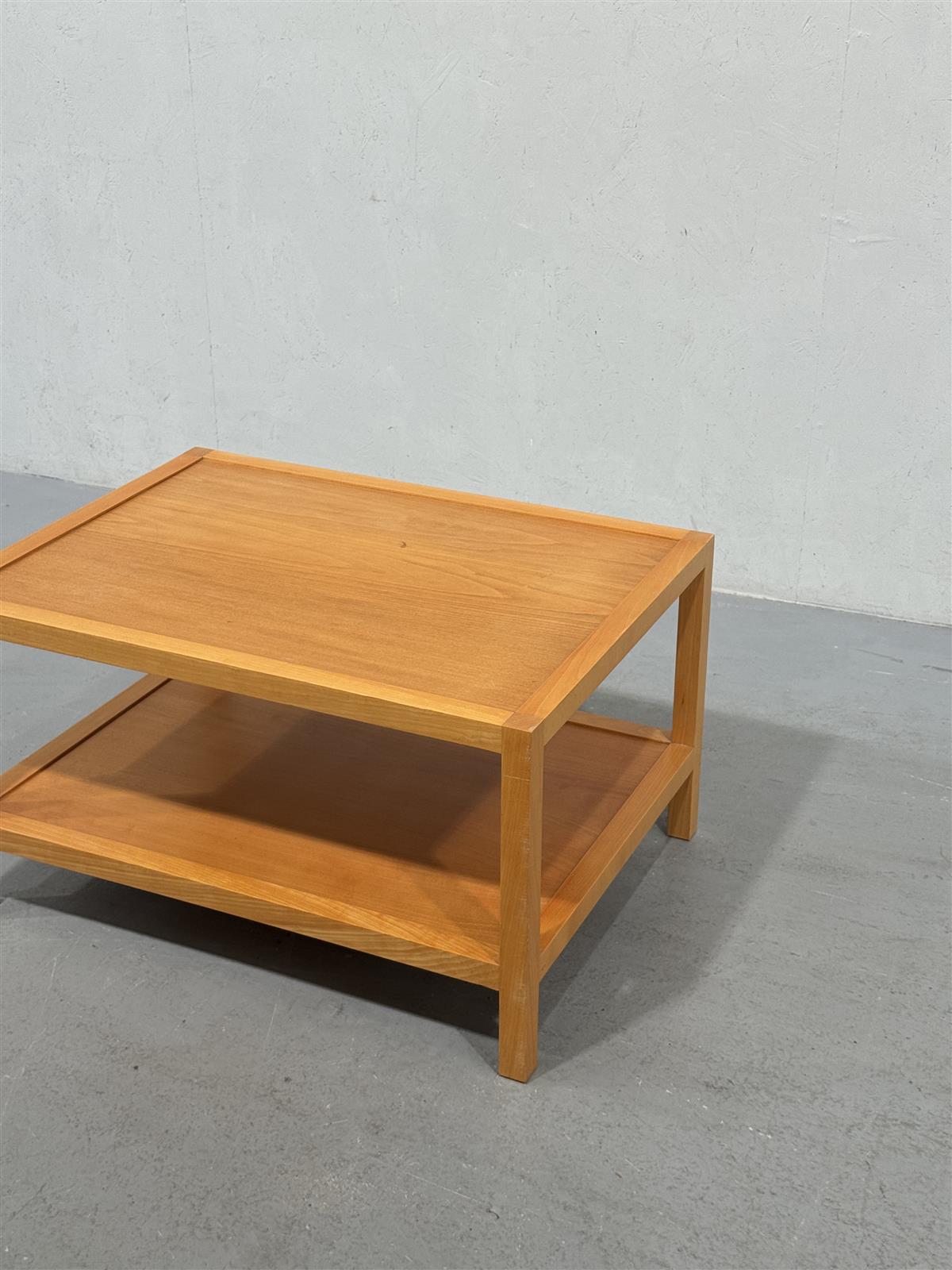 Tyylikäs moderni sohvapöytä, jossa on yksinkertainen ja selkeä muotoilu. Pöydässä on kaksi tasoa, jotka tarjoavat runsaasti säilytystilaa kirjoille tai koriste-esineille. Valmistajaa ei tiedetä, mutta pöydän ajaton muotoilu sopii monenlaisiin sisustuksiin.