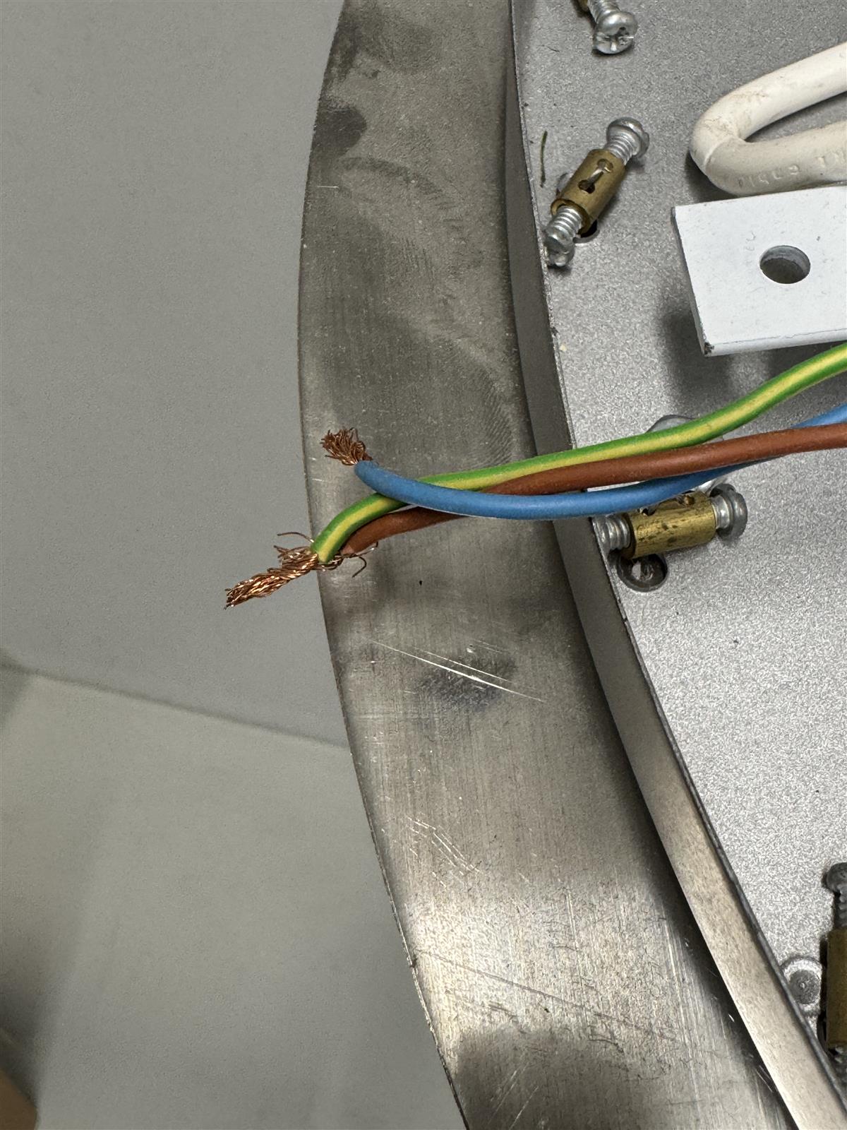 Pintapölyä. Yksi vaijerin kiinnityspidike poikki. Yksi lasispiraali poikki.