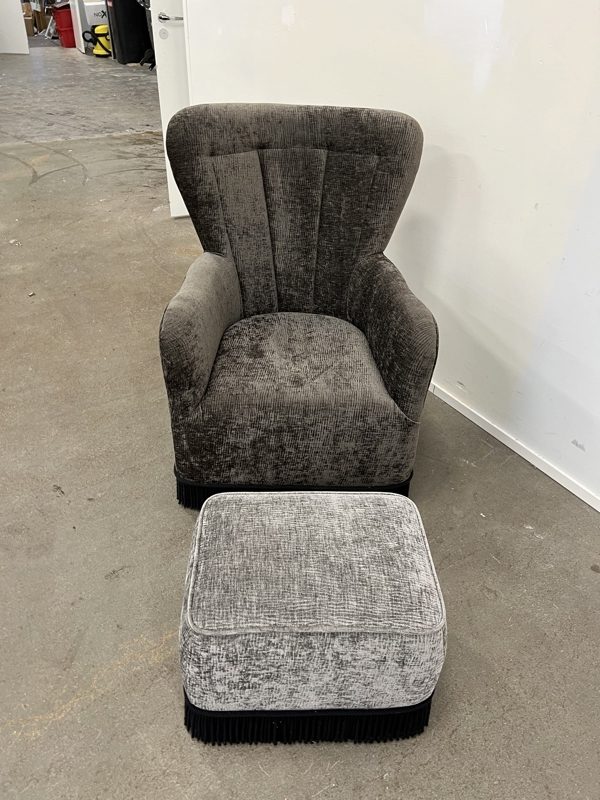 Hinta sisältää nojatuolin ja rahin. HUOM! kankaan väri voi olla hieman vaaleahko harmaa tai tummempi.