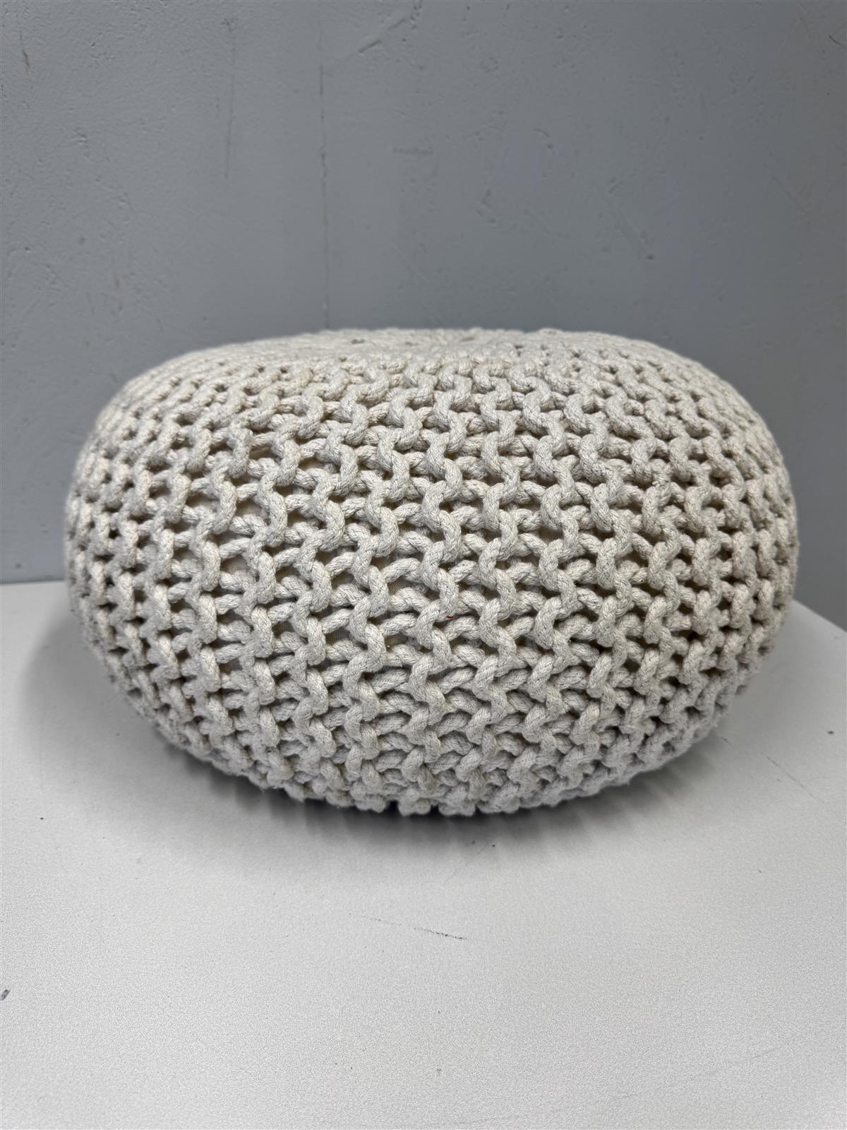 Nyörinen lattiatyyny, joka tuo pehmeyttä ja mukavuutta sisustukseen. Vaalean värinen tyyny on valmistettu paksusta langasta, mikä tekee siitä kestävän ja tukevan. Sopii erinomaisesti olohuoneeseen tai makuuhuoneeseen lisäistuimeksi tai jalkarahiksi.