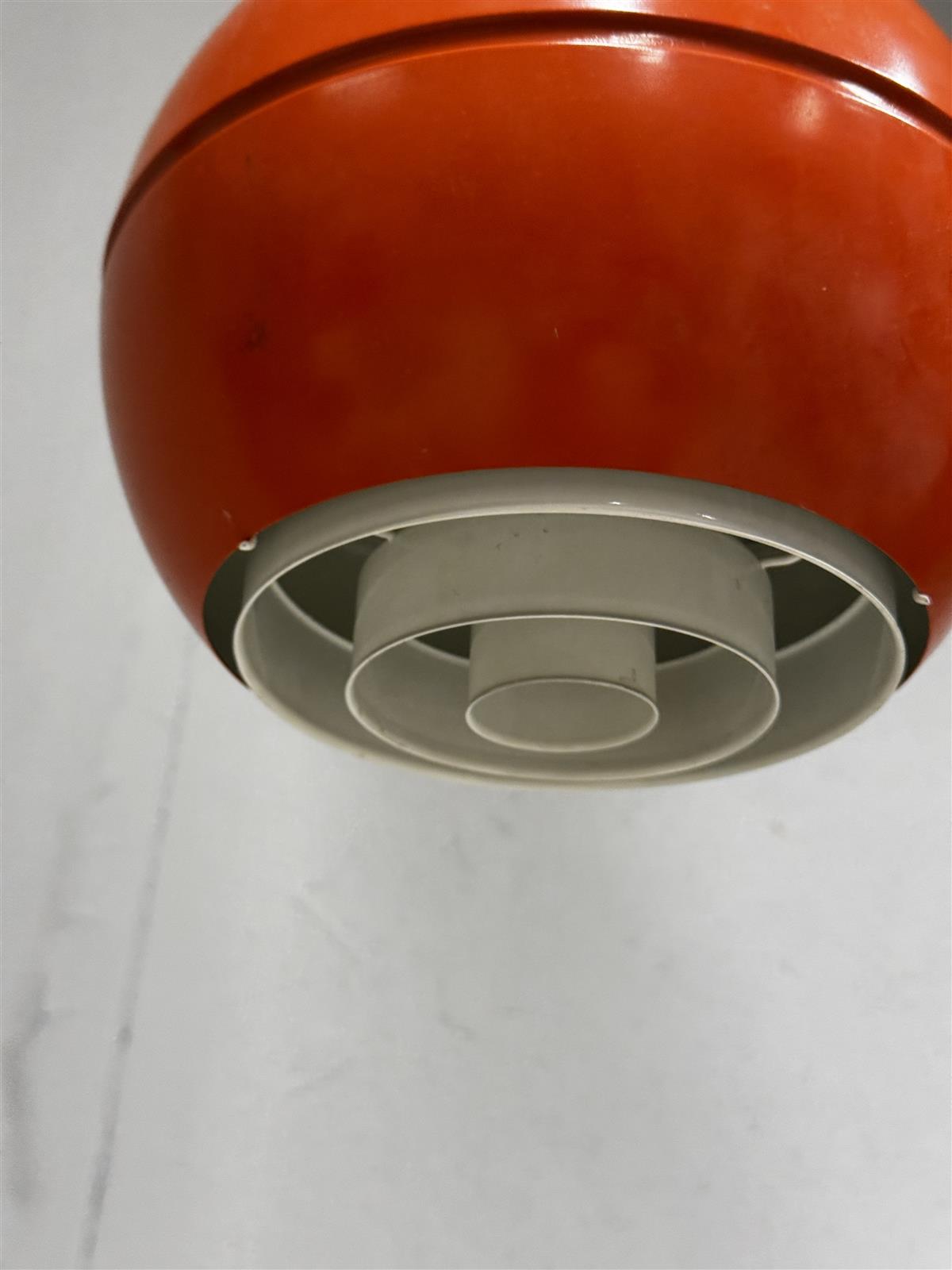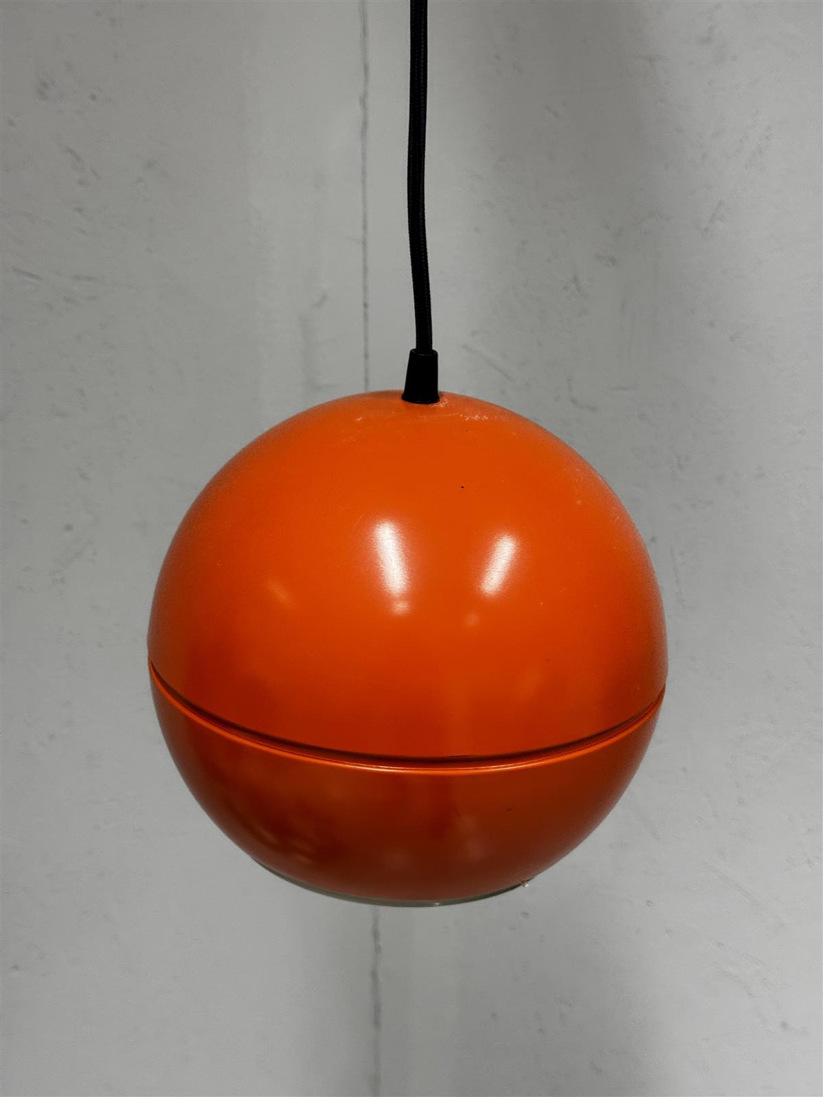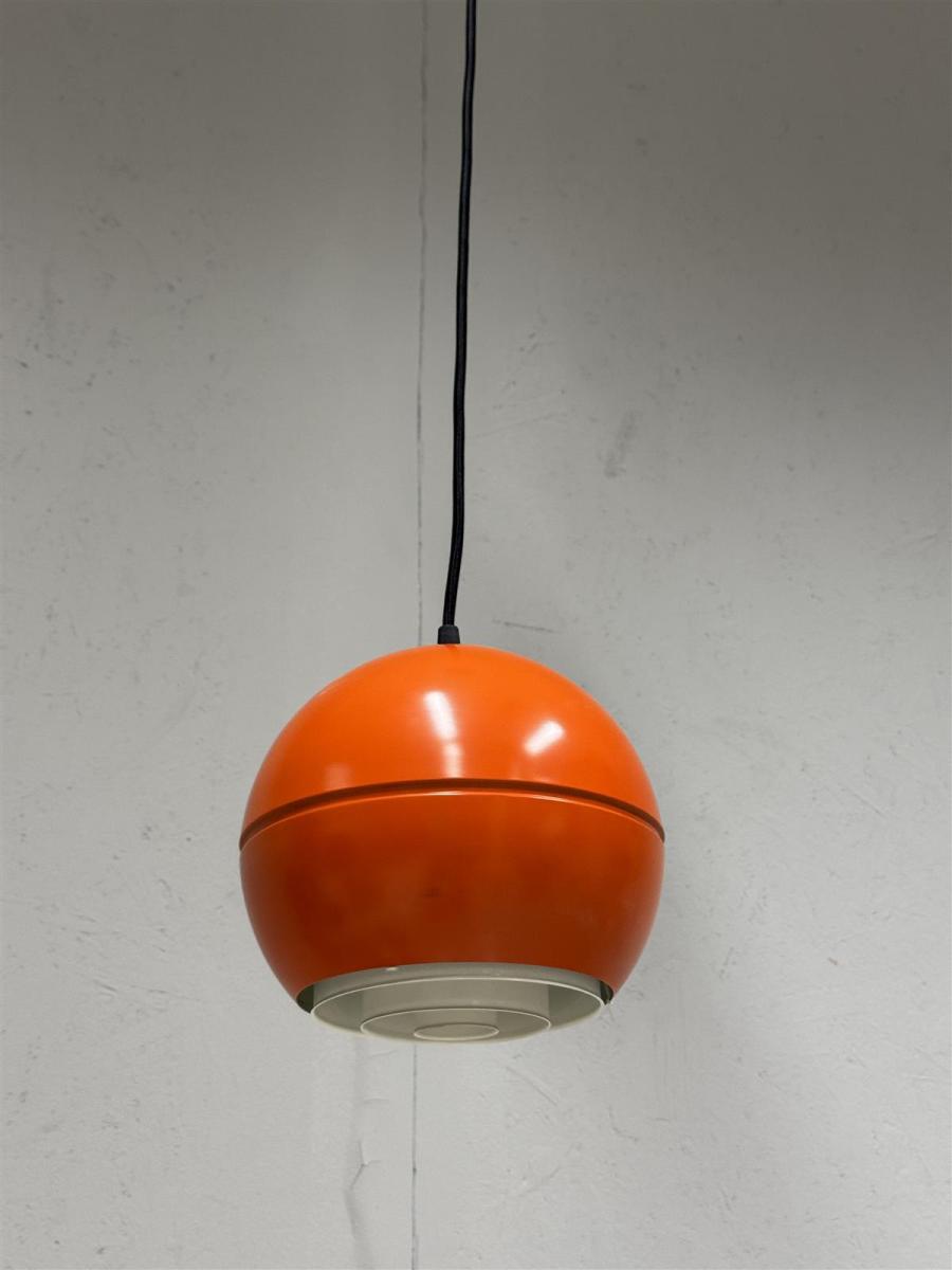 Tämä on retrohenkinen Stockmann Orno PingPong riippuvalaisin, joka on muotoiltu pallomaiseksi design Heikki Turunen. Valaisimen väri on kirkas oranssi, mikä tekee siitä erottuvan ja energisen lisän mihin tahansa tilaan. Valaisimen alapuolella on säleikkö, joka suuntaa valoa alaspäin. Johto on vaihdettu alkuperäisestä kangaspintaiseen moderniin.