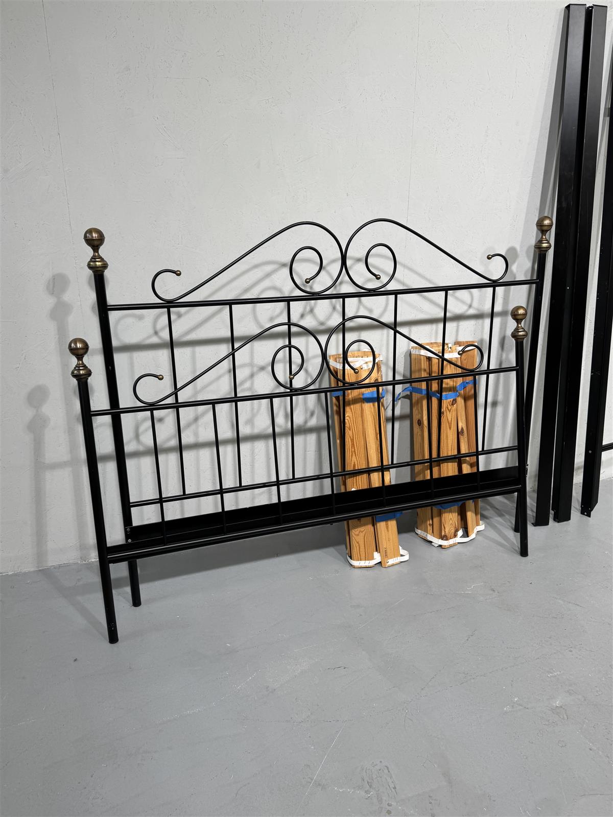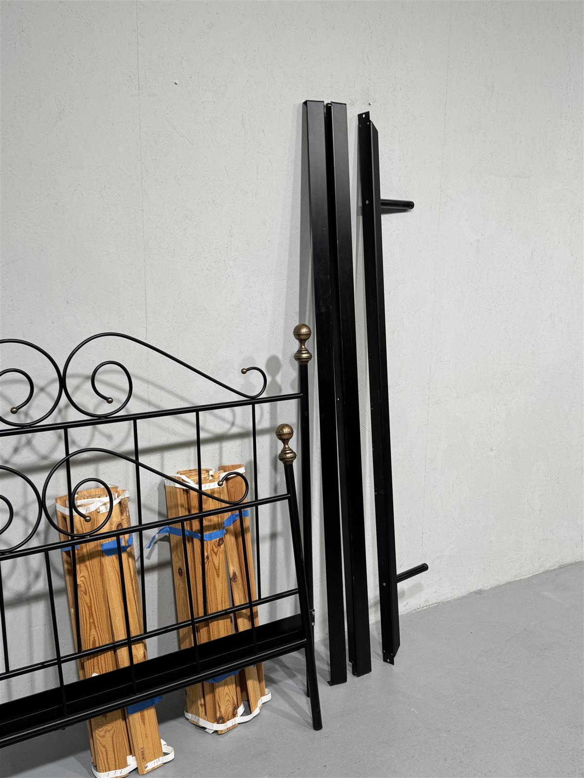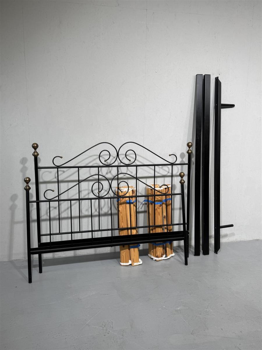 Parisängyn metallinen runko kahdella sälepohjalla. Kauniisti koristeiset päätypalat, helppo kasata. Mukaan Sotka 80×200 patjat sekä petauspatja halutessaan.