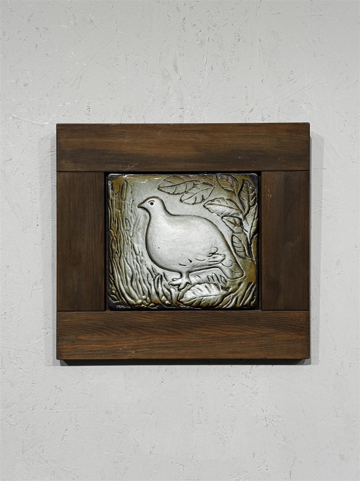 Pentik Studio Fauna Riekko seinäreliefi, suunnittelija Henrik Allert. Keraaminen laatta esittää Riekkoa ja on kehystetty paksulla  puulla. Valmistaja on Pentik, Suomi.