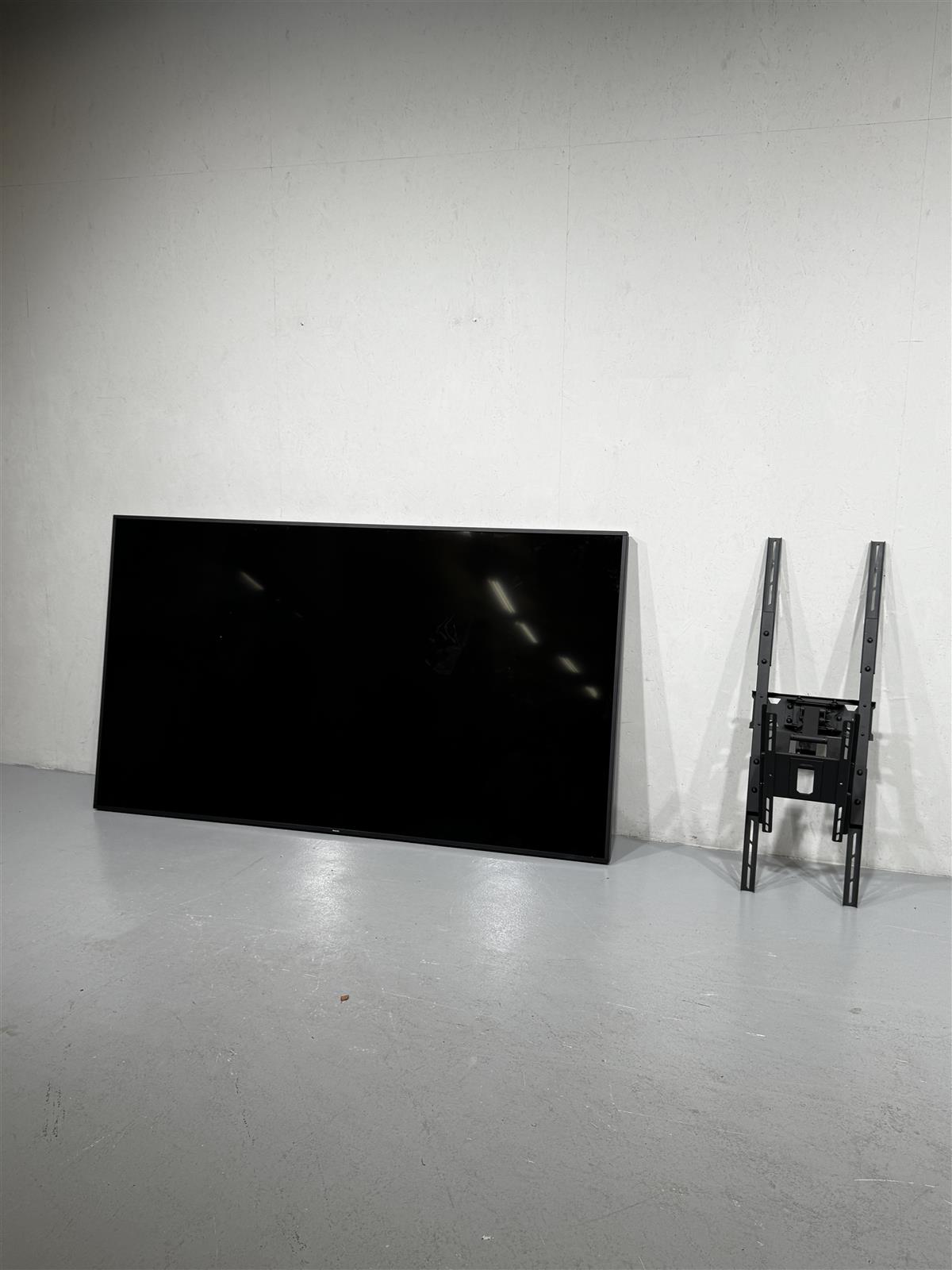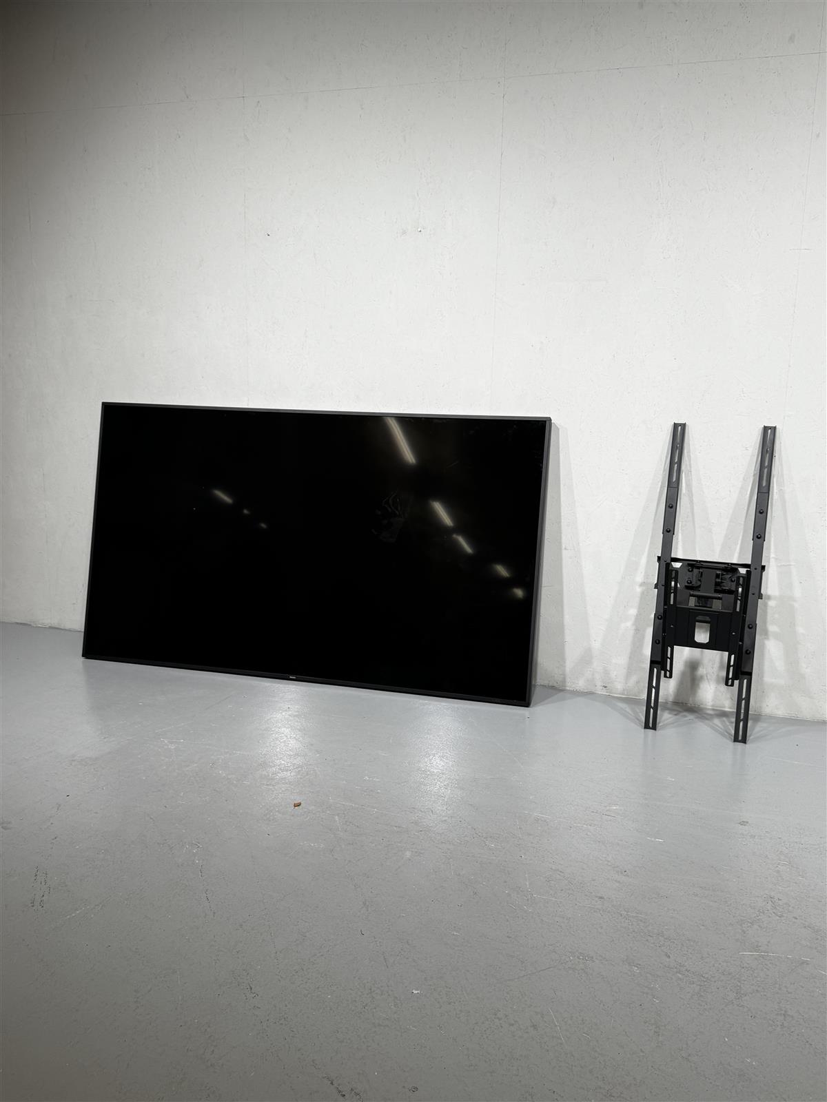 Näytön takaosassa on useita liitäntöjä, kuten USB ja HDMI, mikä mahdollistaa monipuolisen käytön eri laitteiden kanssa. Näytön pinta on musta ja kiiltävä, mikä antaa modernin ilmeen. Mukana tulee kääntyvä seinäkiinnike, joka helpottaa asennusta seinälle. Näytön koko on vaikuttava, mikä tekee siitä erinomaisen valinnan sekä koti- että toimistokäyttöön. Näytön tarkkuus ja värit ovat erinomaiset, mikä parantaa katselukokemusta huomattavasti. Mukana ei ole kaukosäädintä.