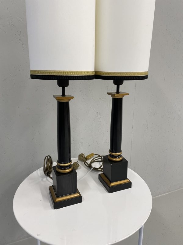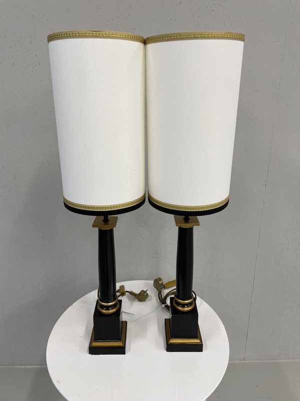 Tämä tyylikäs kaksikko musta-kultaisia pöytävalaisimia tuo klassisen eleganssin ja hienostuneisuuden jokaiseen tilaan. Metallinen, kultahohteinen korkea jalka. Suoralinjainen muotoilu yhdistettynä kontrastiväreihin luo ajattoman ilmeen, joka sopii monenlaiseen sisustukseen. Korkea valkoinen varjostin.