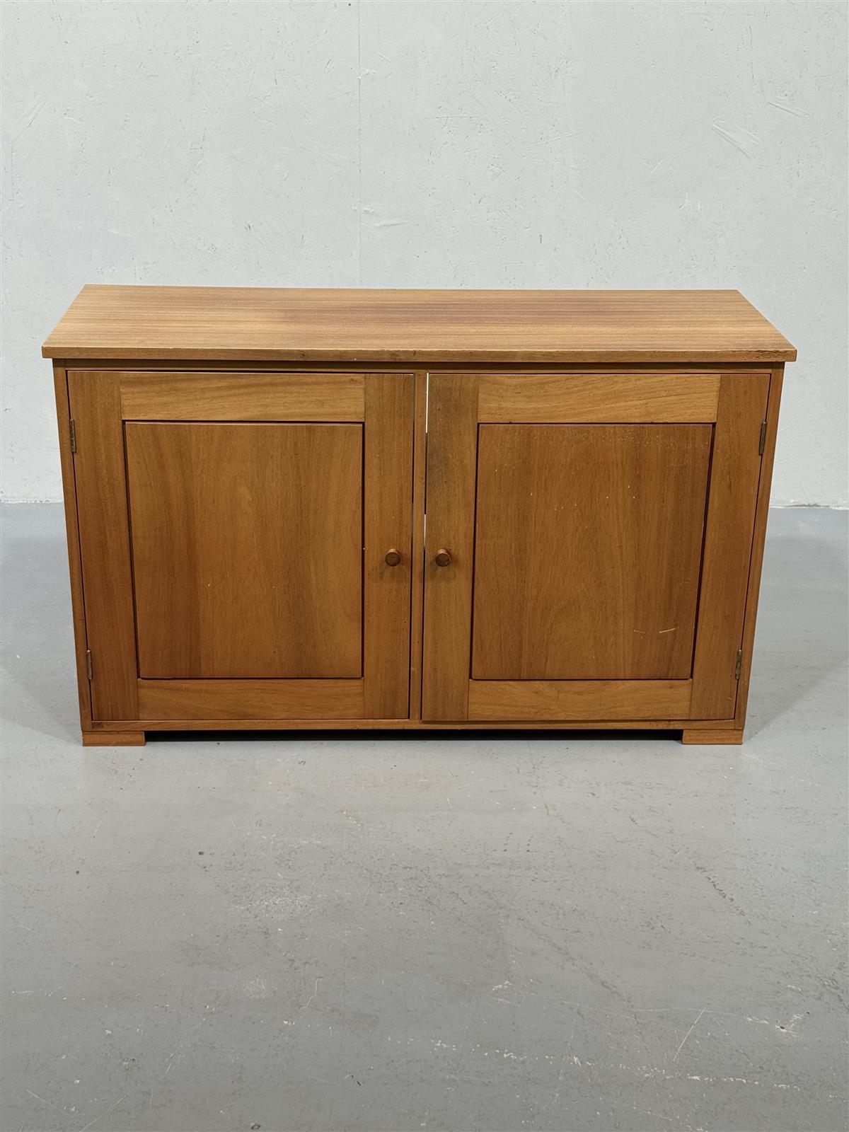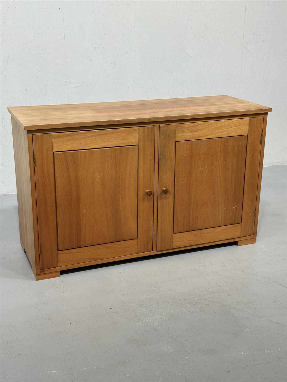 Käytännöllinen puinen stereokaappi, jossa on kaksi ovea ja sisätilaa hyllyille. Sopii hyvin monenlaiseen säilytykseen.