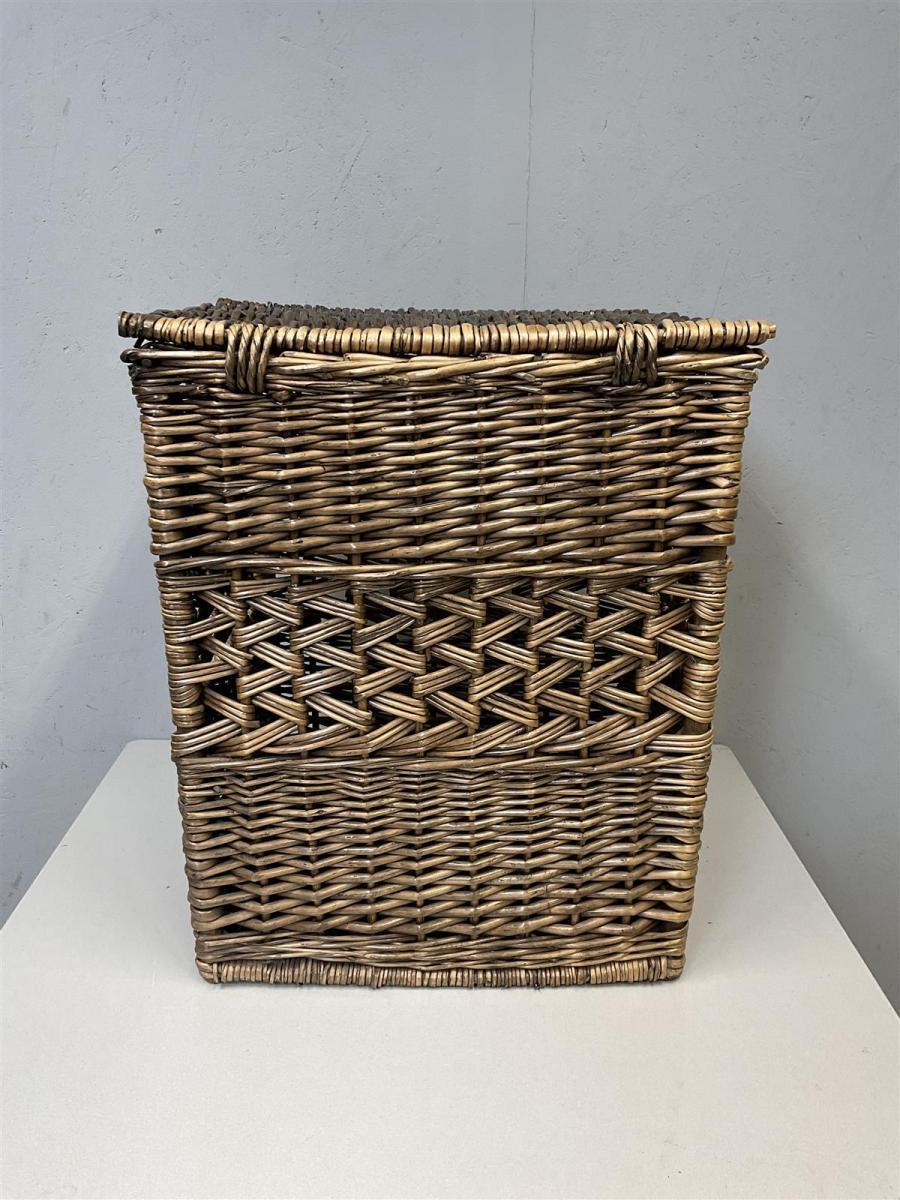 Punottu kori, joka on valmistettu luonnonmateriaalista. Kori on suunniteltu säilytykseen ja siinä on kansi. Kori on tilava ja siinä on kauniit punoskuviot, jotka antavat sille perinteisen ilmeen.