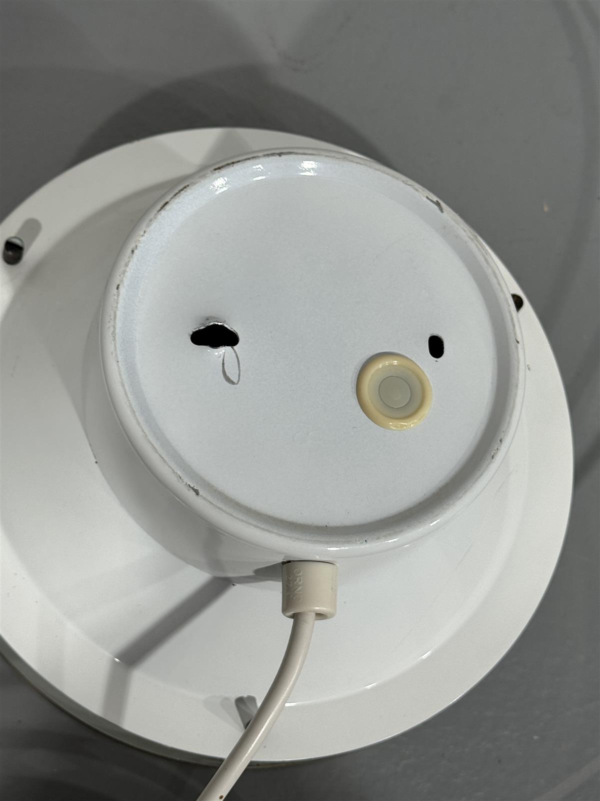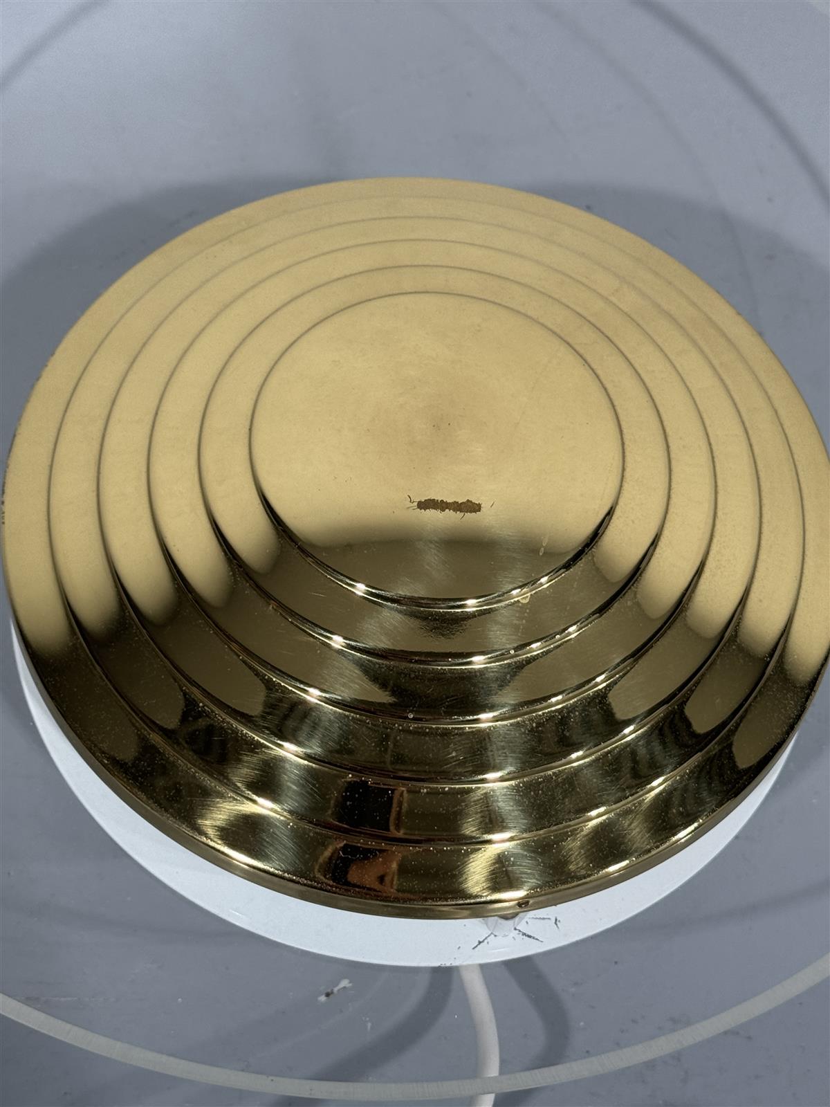Valaisimessa on pieniä käytön jälkiä, kuten naarmuja ja kulumaa erityisesti kultaisessa osassa. Johto on hieman kellastunut, mutta muuten valaisin on toimiva ja hyvässä kunnossa.