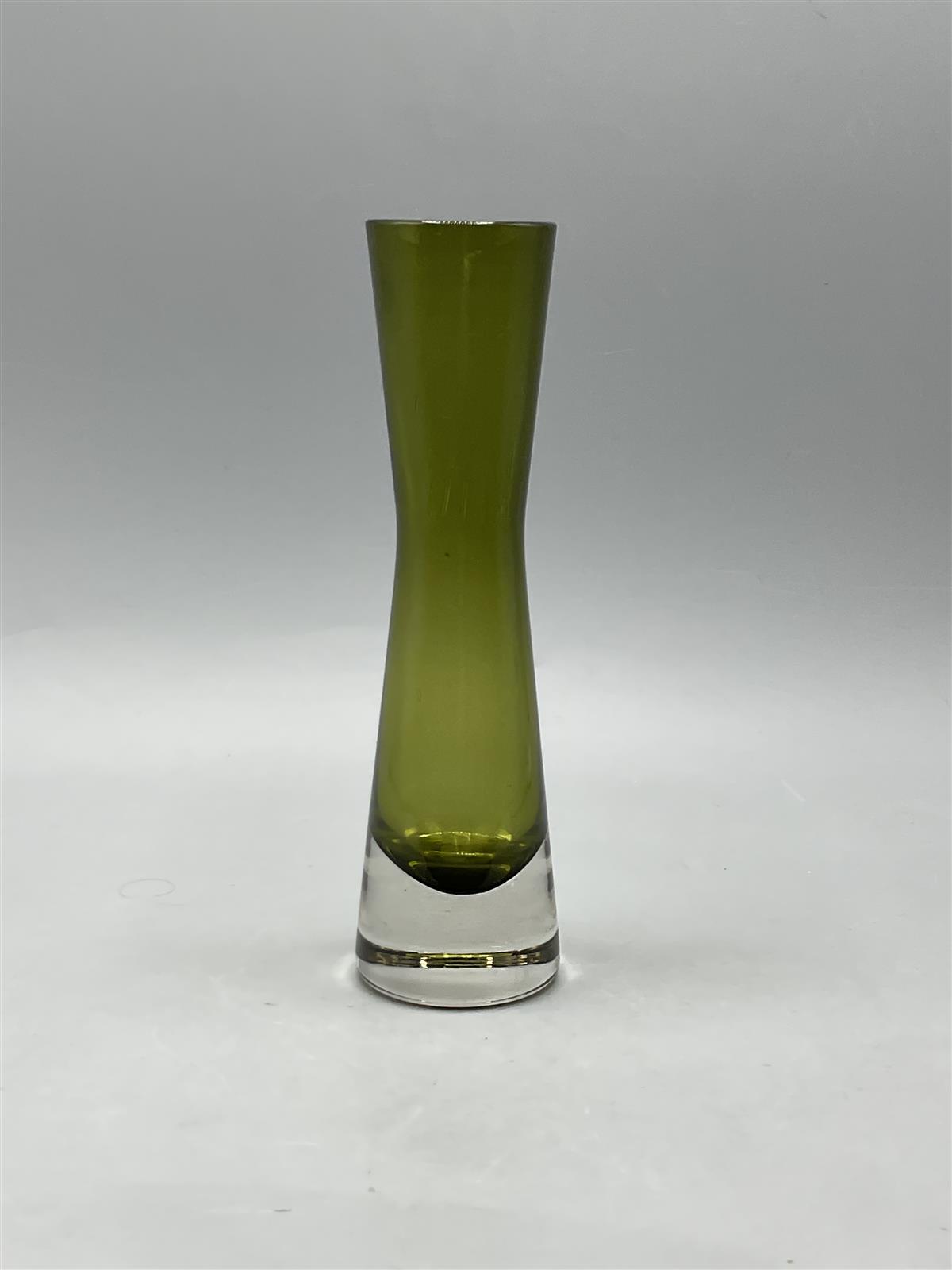 Riihimäen lasi 1318 oliivinvihreä maljakko. Korkeus 18cm.