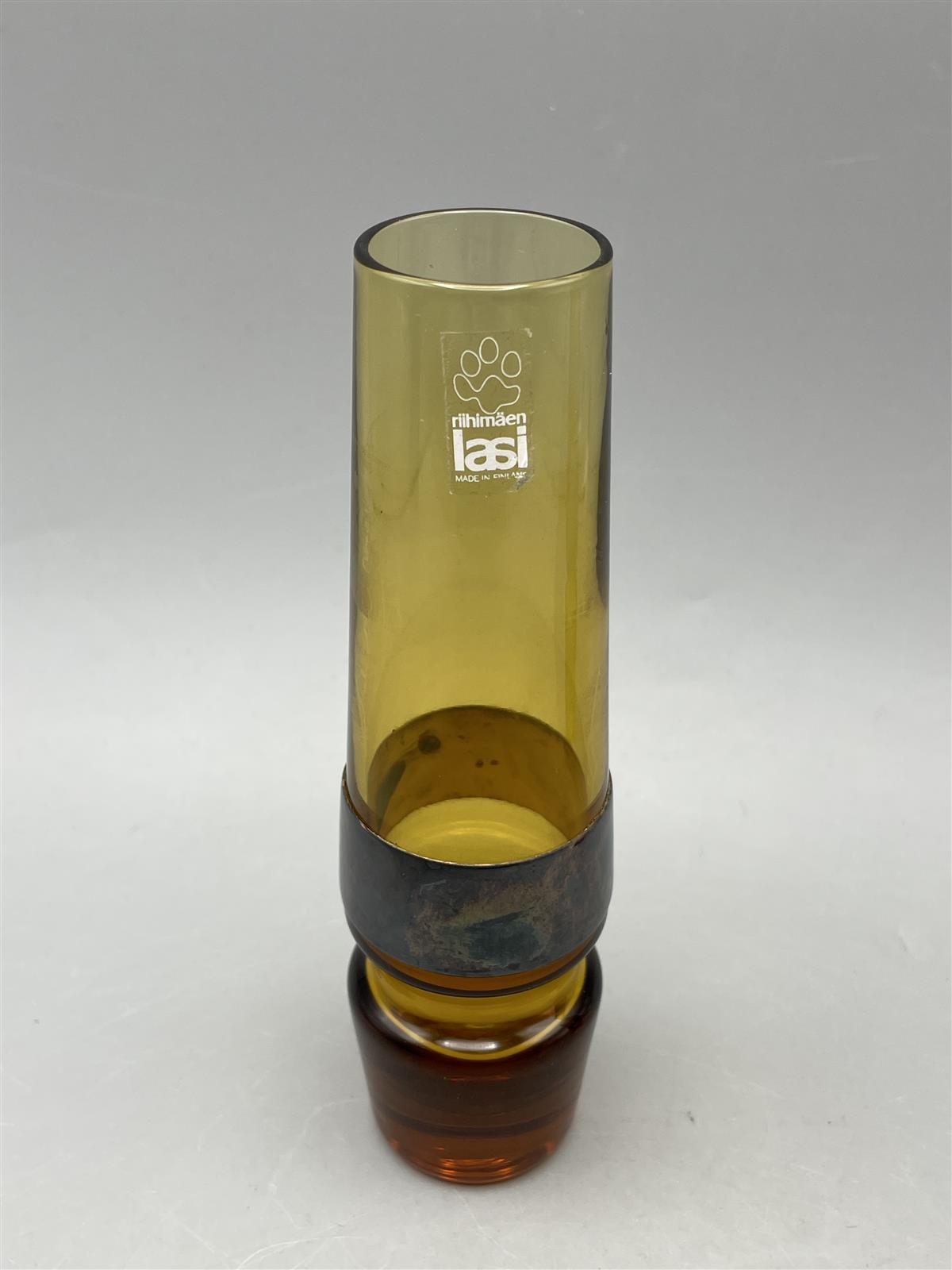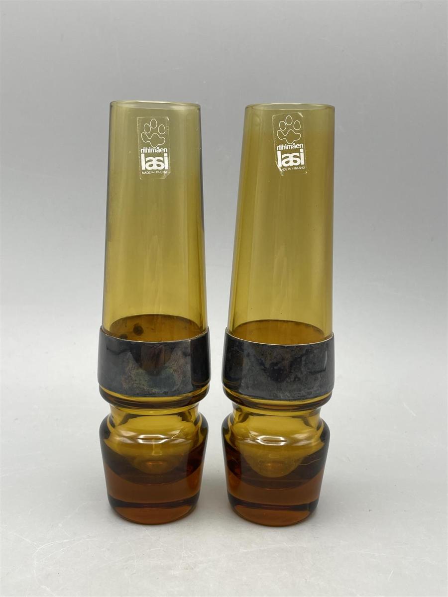Riihimäen lasi maljakkopari alpakka panta(kaiverrukset).