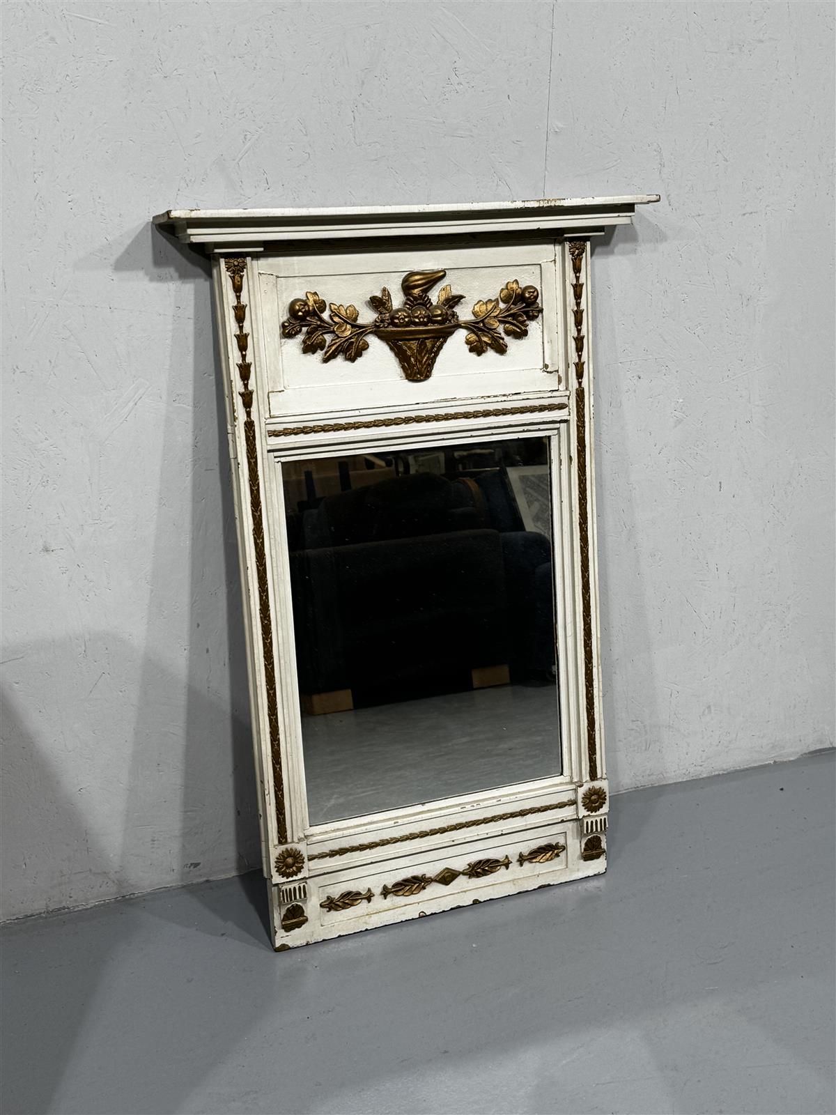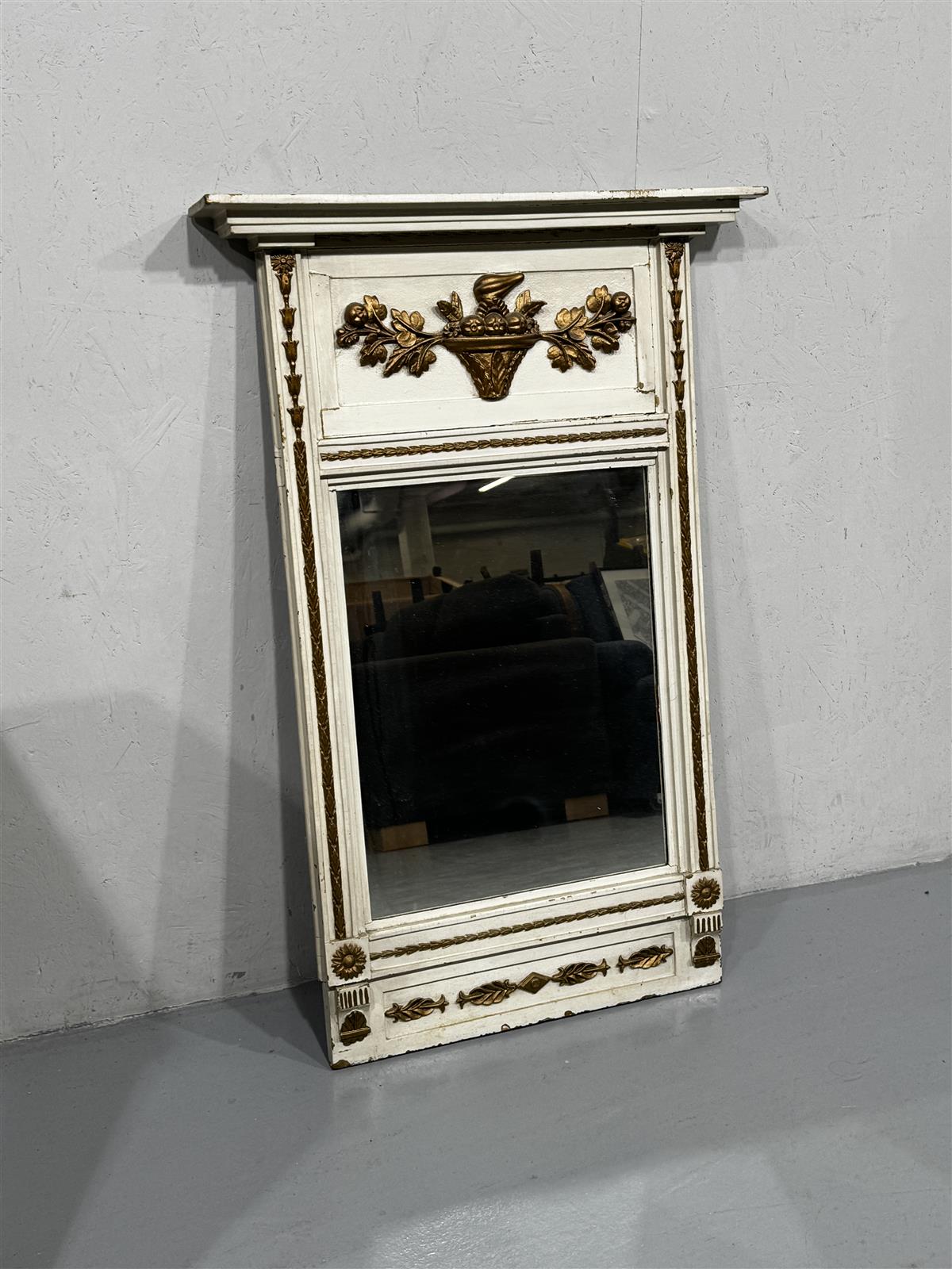 Koristeellinen rokokoo-tyylinen peili, jossa on kultaisia yksityiskohtia. Peilin yläosassa on koristeellinen kukka- ja lehtiaiheinen ornamentti.