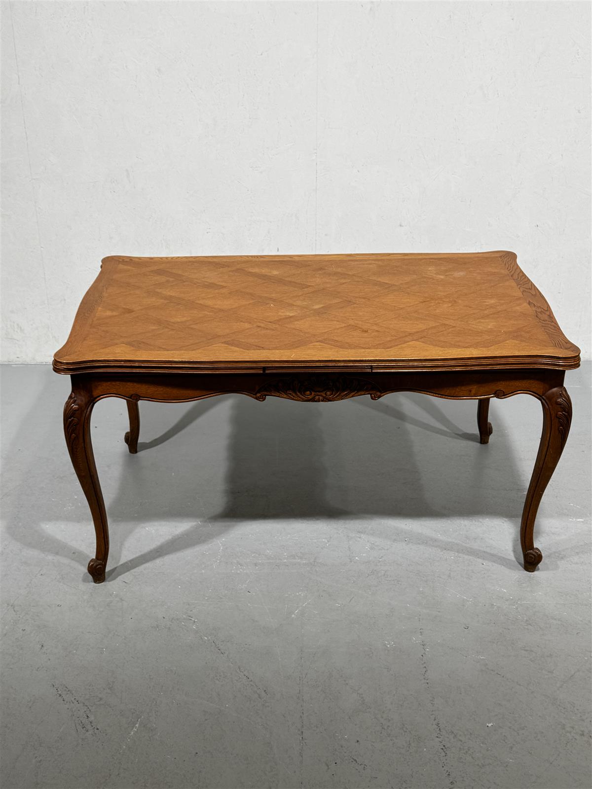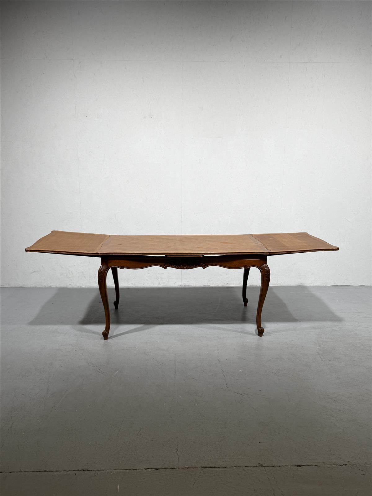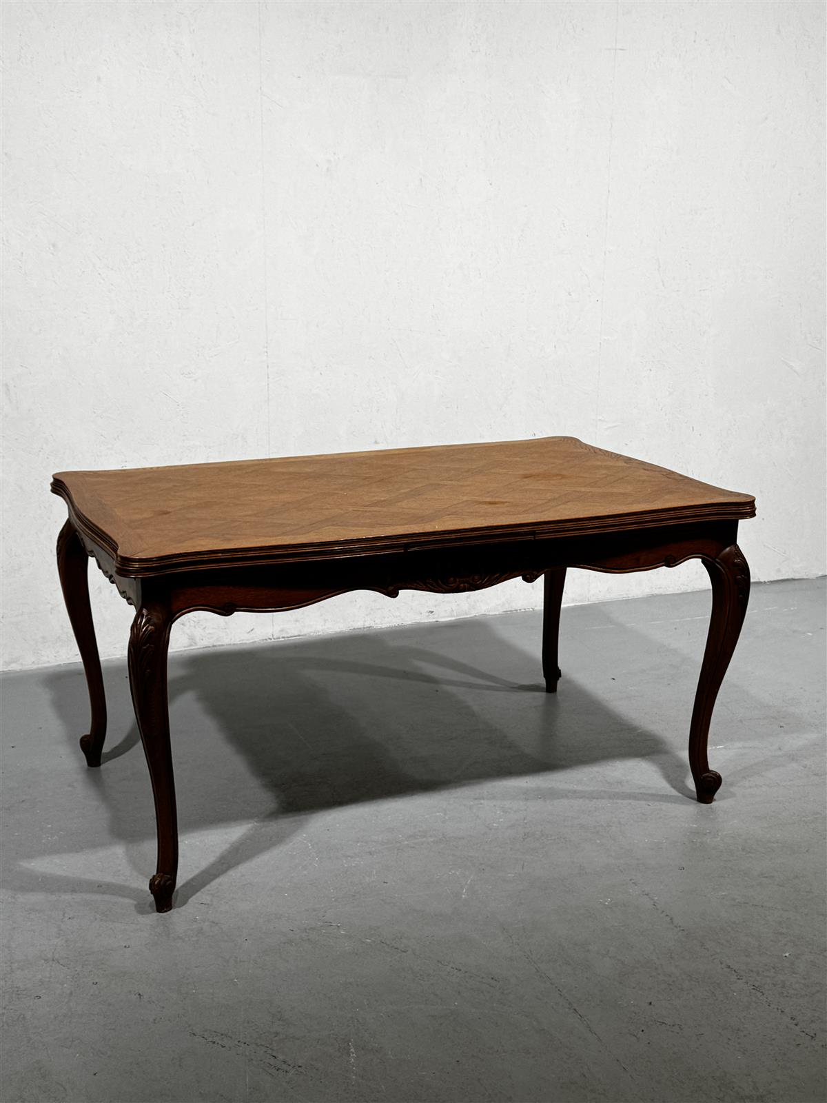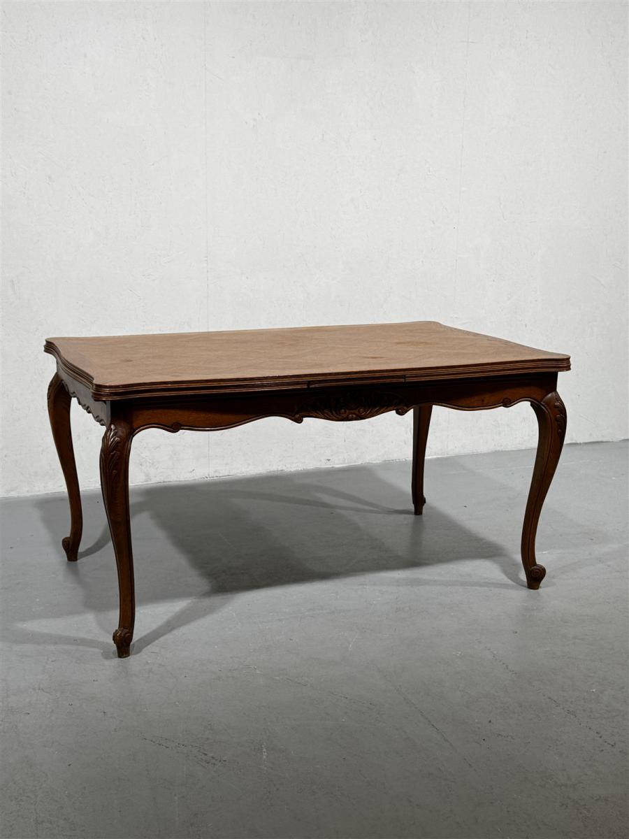 Rokokoo-tyylinen ruokapöytä, jossa on koristeelliset jalat ja kauniisti kuvioitu pöytälevy. Pöydän koko on 148×93 cm, ja se on valmistettu puusta. Pöydän alta saa sivuille levitettyä 2 kpl +57cm osaa, jotka asettuvat hieman jäykästi sivuille, kaartuen ylös,
