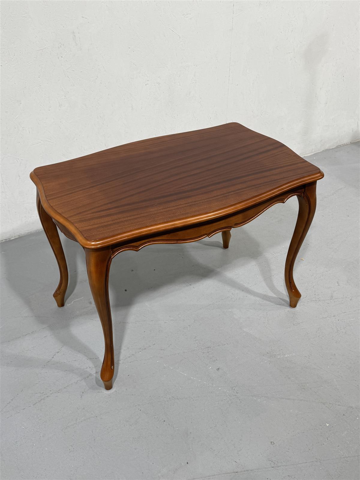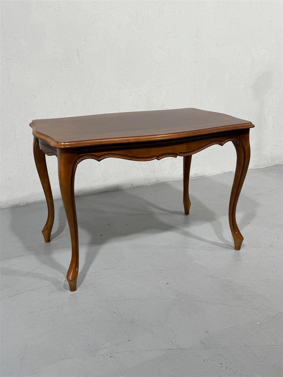 Tyylikäs rokokoo sohvapöytä, jossa on kauniisti kaartuvat jalat ja sileä puupinta. Pöydän muotoilu tuo mieleen 1700-luvun ranskalaisen rokokoon, joka tunnetaan koristeellisuudestaan ja keveydestään. Tämä tyyli korostaa eleganssia ja hienostuneisuutta, ja se on ollut suosittu valinta hienostuneissa sisustuksissa.