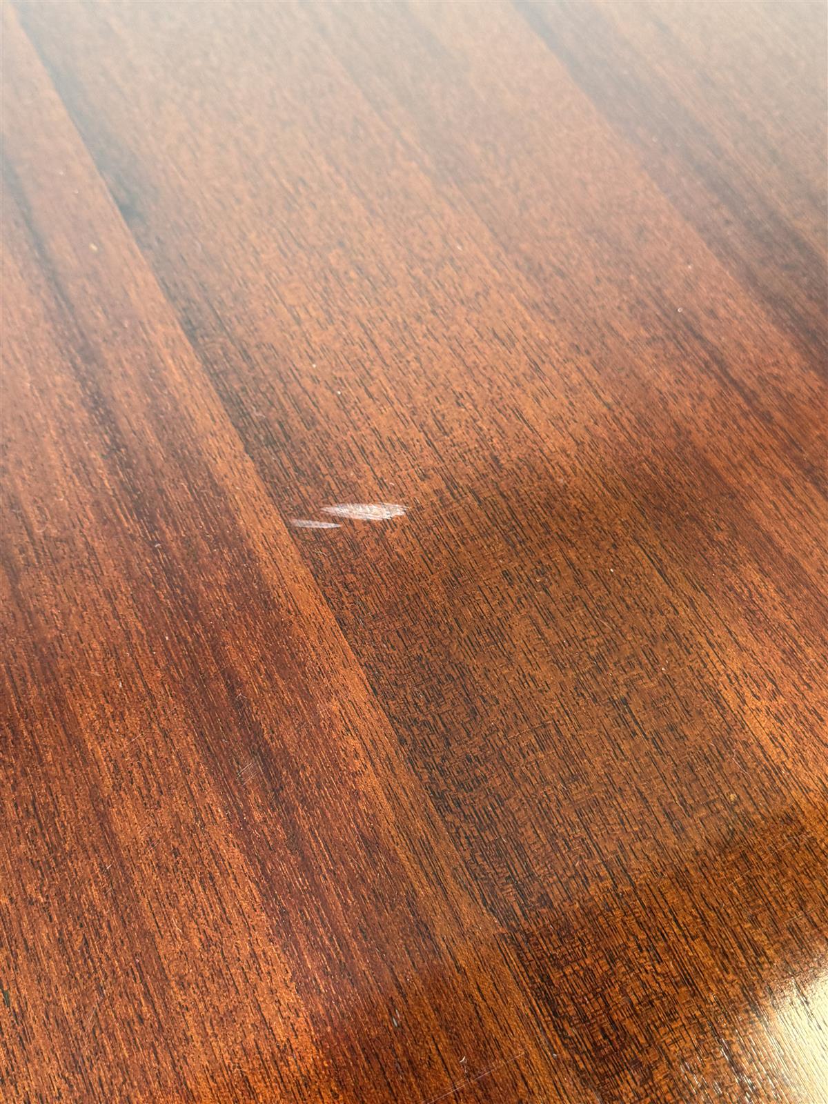 Pöydän pinnassa on muutama pieni kuluma, mutta yleisilme on todella siisti. Jalat ovat tukevat ja koristeet hyvin säilyneet.