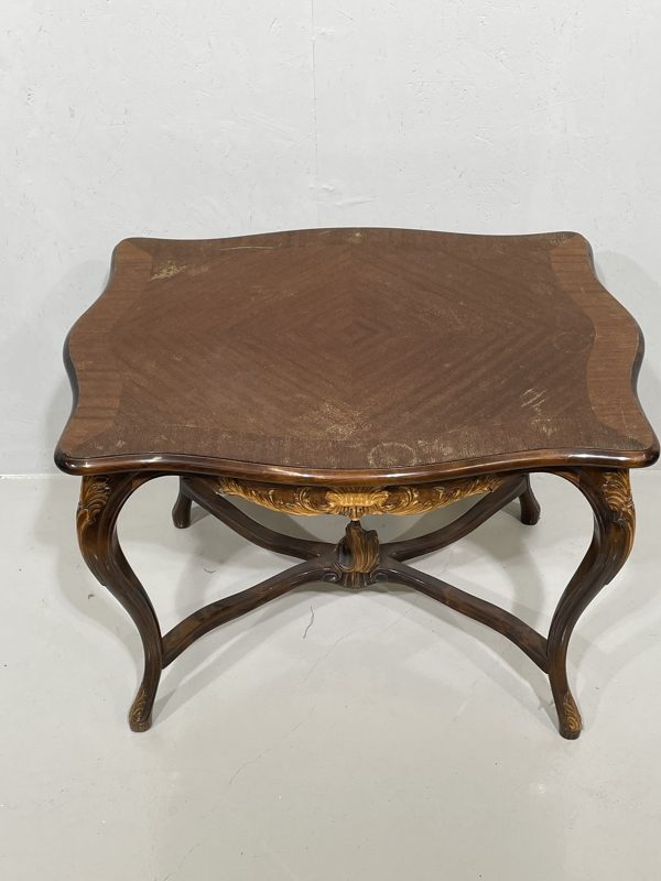 Kaunis vintage sohvapöytä rokokoo henkeen. Jalan keskiössä upea koriste, täyttä puuta.