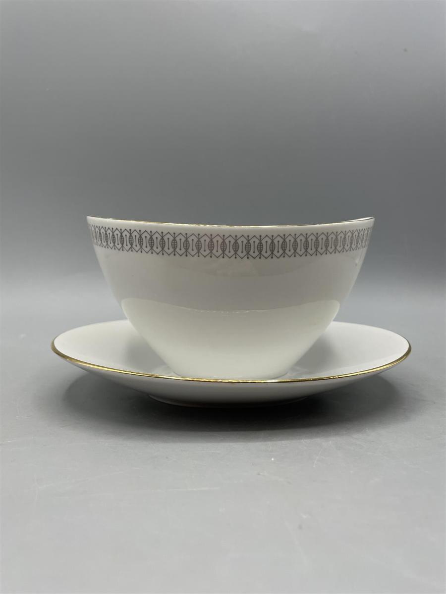 Rörstrand posliini kastikekulho, jossa on koristeellinen reunus.