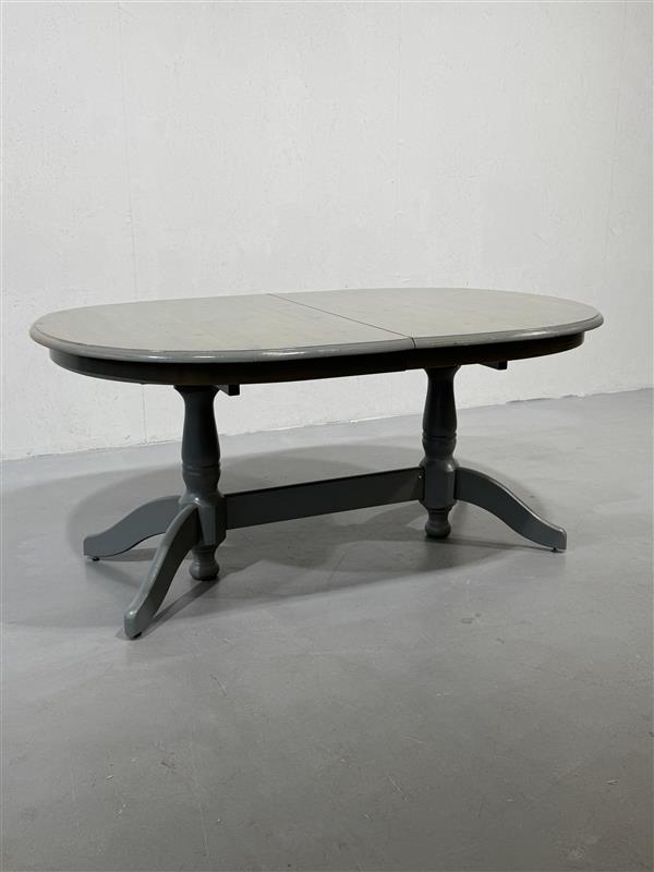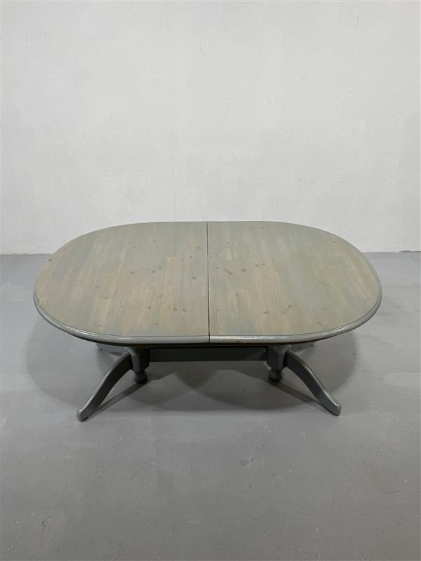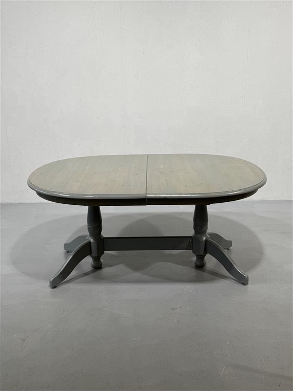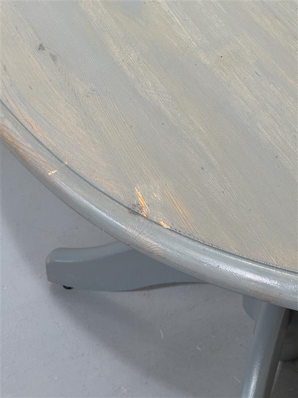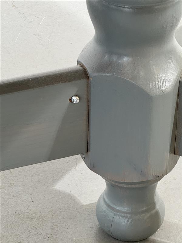 Jalka tuettu kahdella ruuvilla, ei jatkopalaa, maalattu harmaa-petsi pinta, pinnalla kulumia