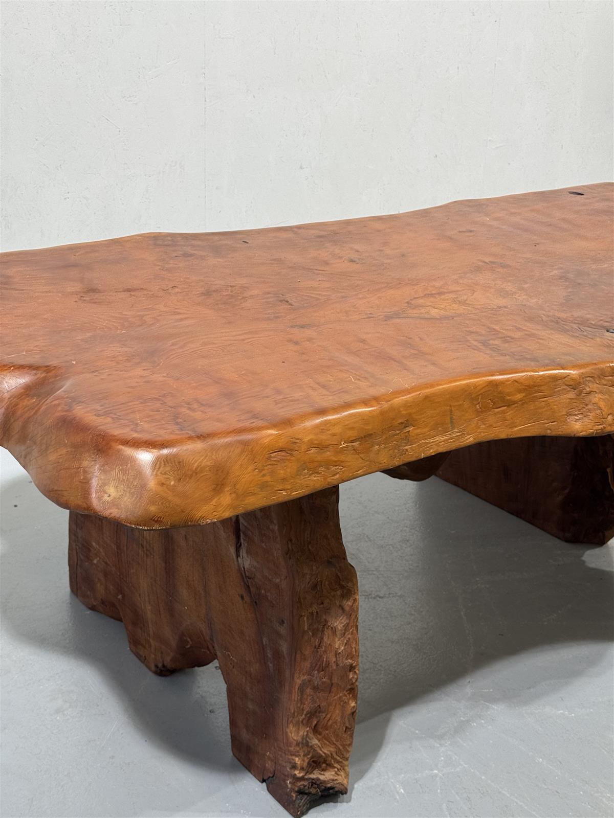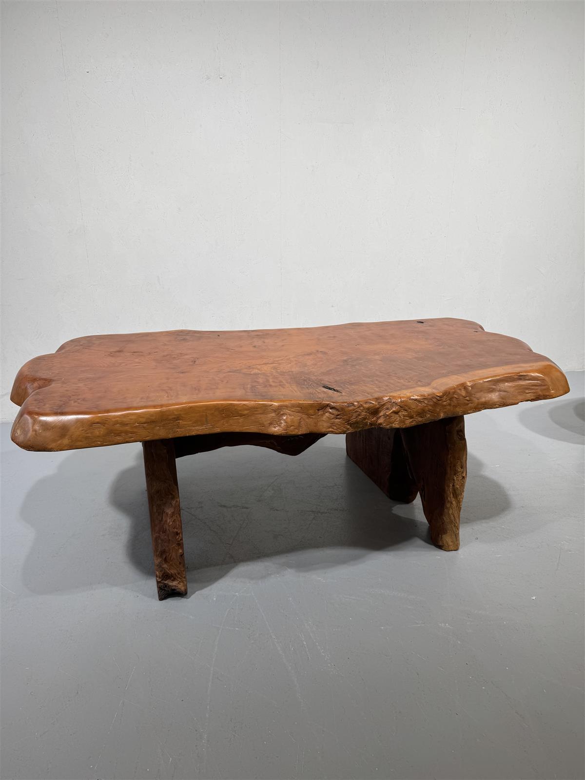 Tyyli sijoittuu 1970–1980-luvuille, jolloin luonnonmuotoja korostavat massiivipuutyöt olivat suosittuja erityisesti Balilla ja Kaakkois-Aasiassa. Pöydässä näkyy selvästi käsinveistetty muoto ja taidokas viimeistely, joka tekee jokaisesta kappaleesta yksilöllisen.