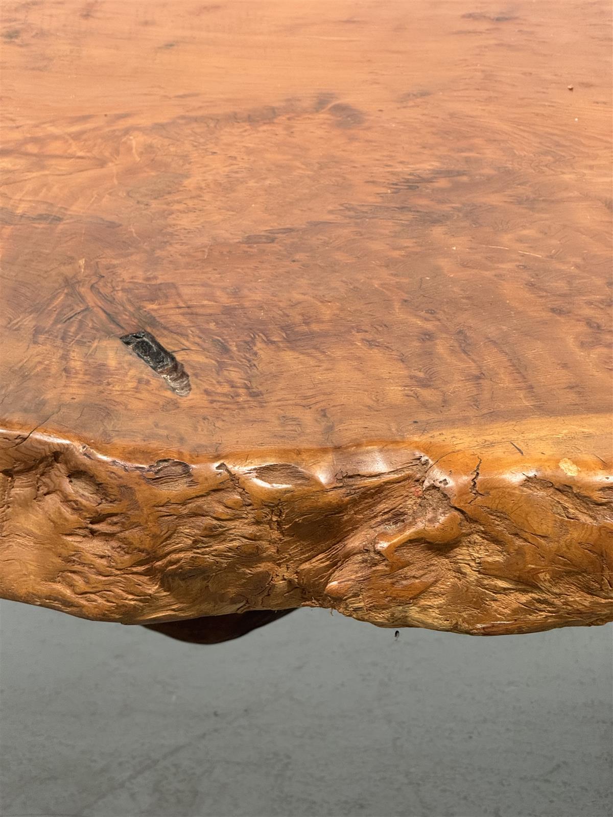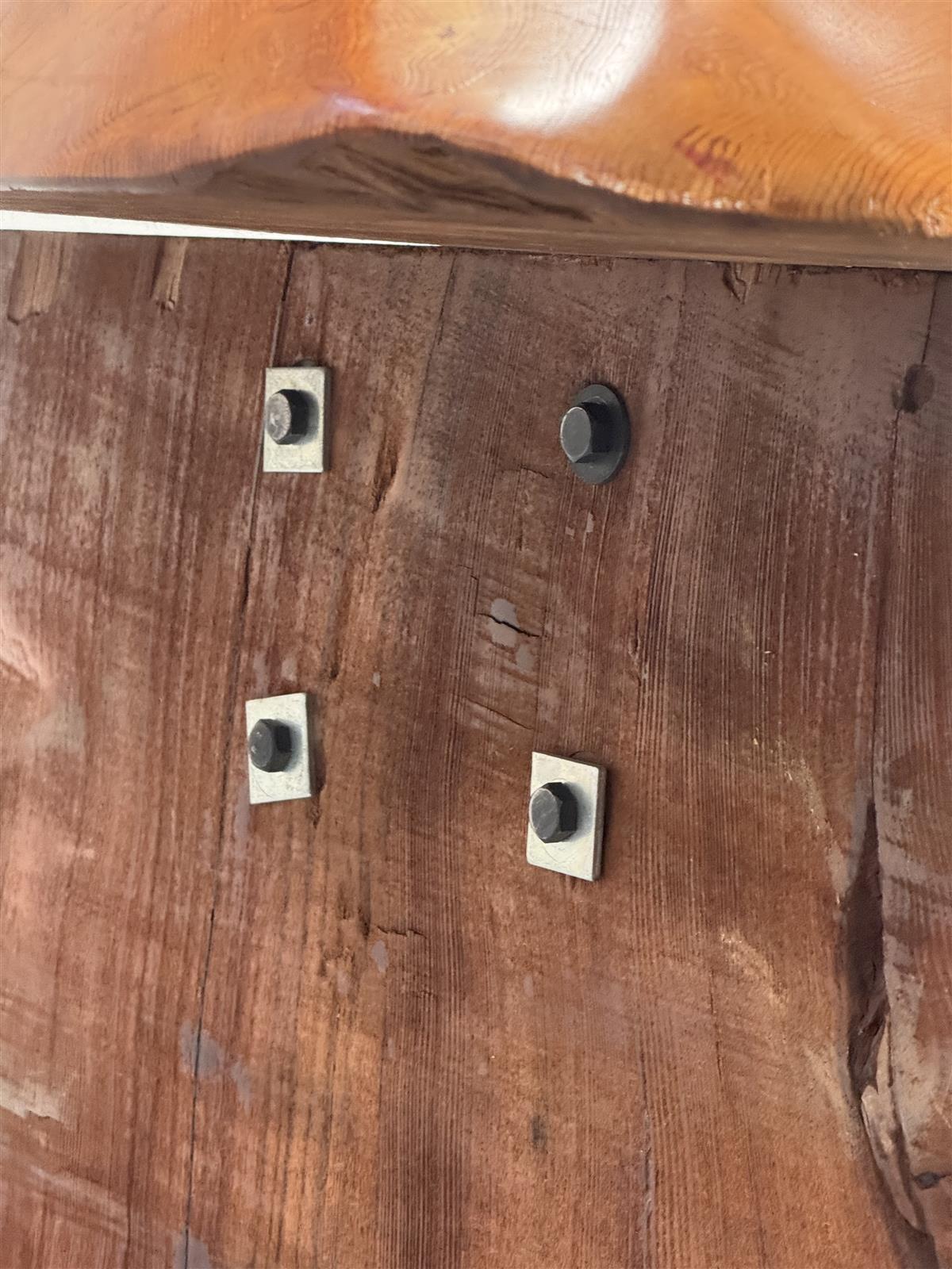 Käsityönä kaiverrettu, äärimmäisen raskas ja jykevä massiivipuu ruokapöytä. Valmistettu yhdestä suuresta puupalasta, jossa orgaaninen, luonnonmukainen reuna ja ainutlaatuinen syykuvio.