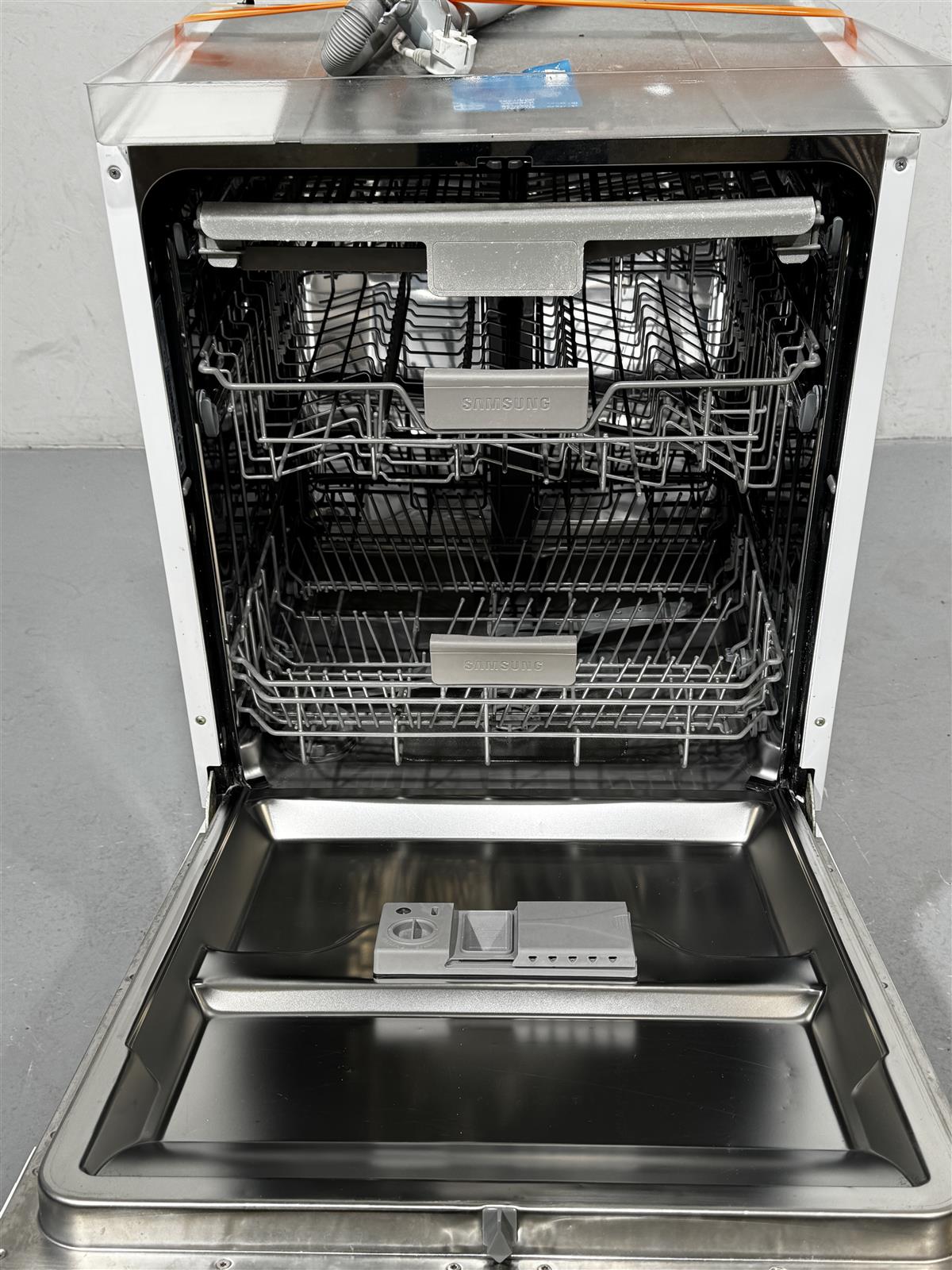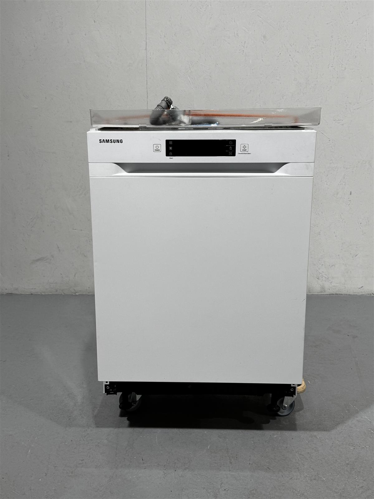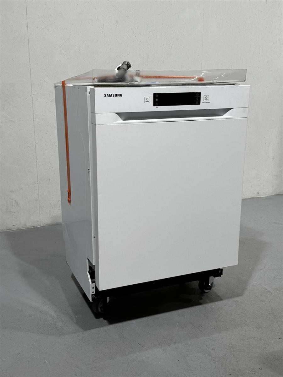 Samsung astianpesukone, malli DW60M6050UW, tarjoaa tehokkaan pesukokemuksen. Laite on valkoinen ja siinä on selkeä näyttö sekä useita pesuohjelmia.