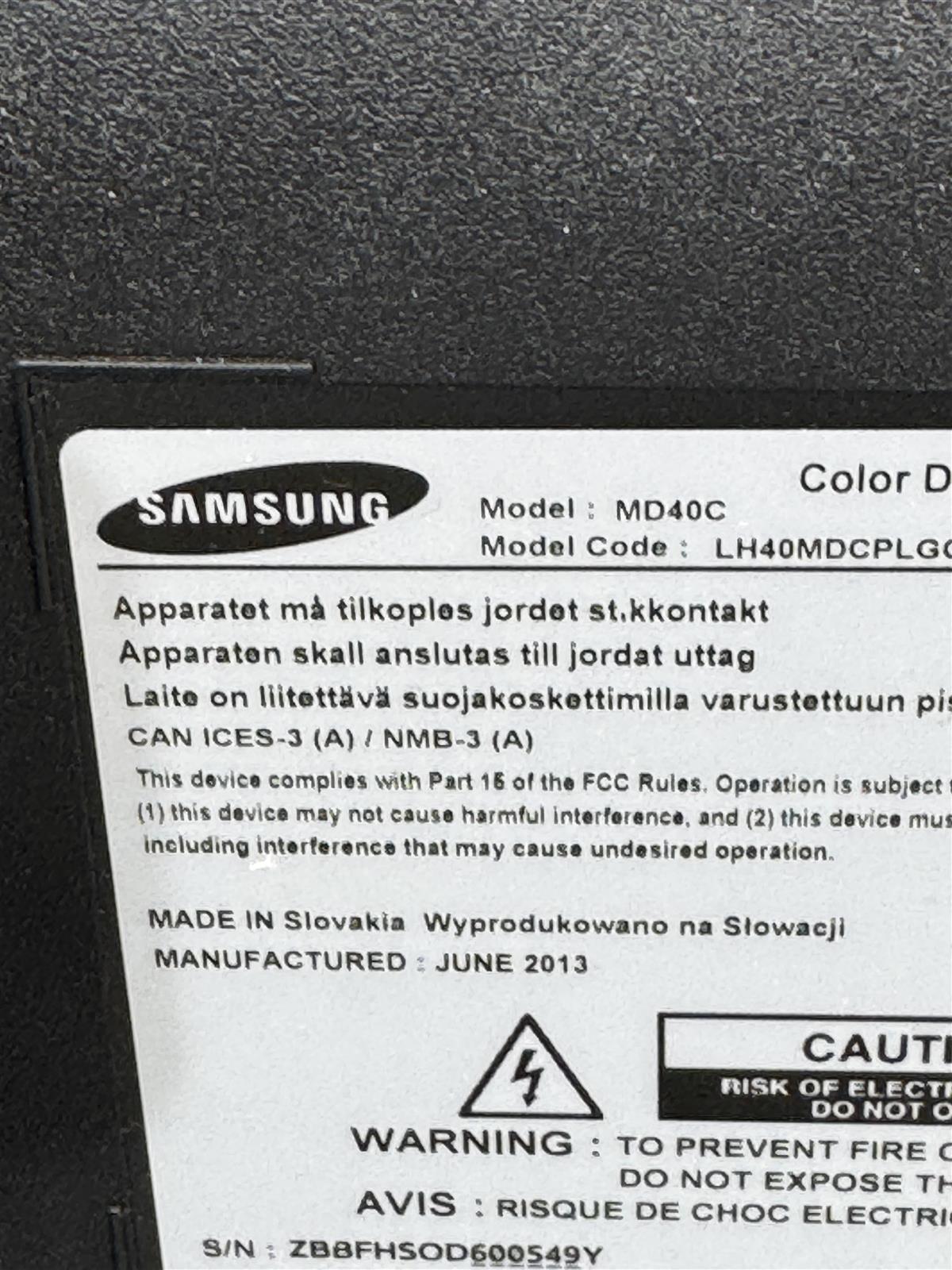 Samsung MD40C on näyttö 6 kpl, joka on valmistettu 2013. Näytössä on useita liitäntämahdollisuuksia, kuten HDMI, DVI ja USB. Tarkoitettu ammattikäyttöön 24/7 infonäytöksi, joten kirkkaus hyvä.