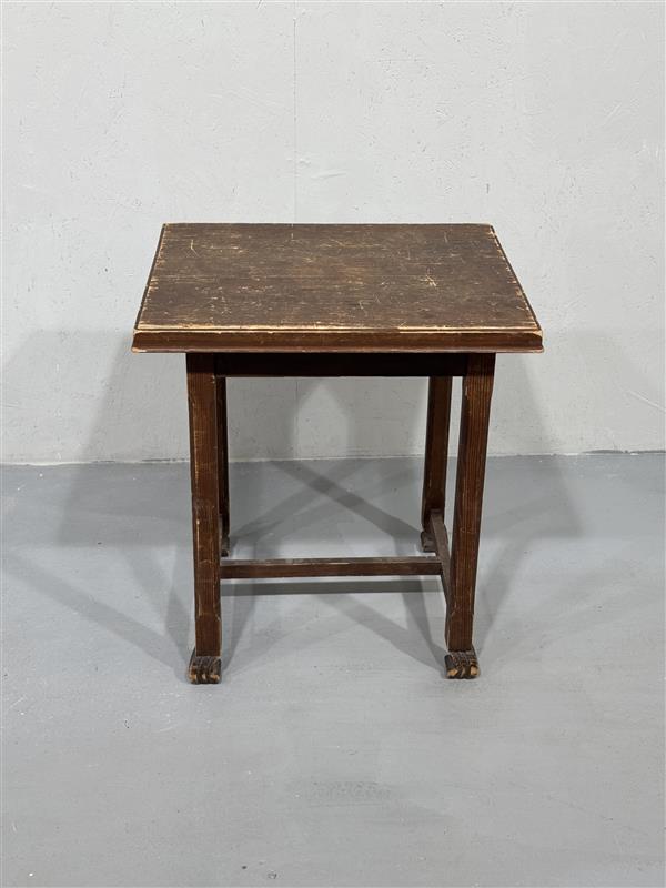 Vintage 1920-luvun sivupöytä, jonka massiivipuinen rakenne ja leijonakäpäläjalat luovat klassista eleganssia sisustukseen.