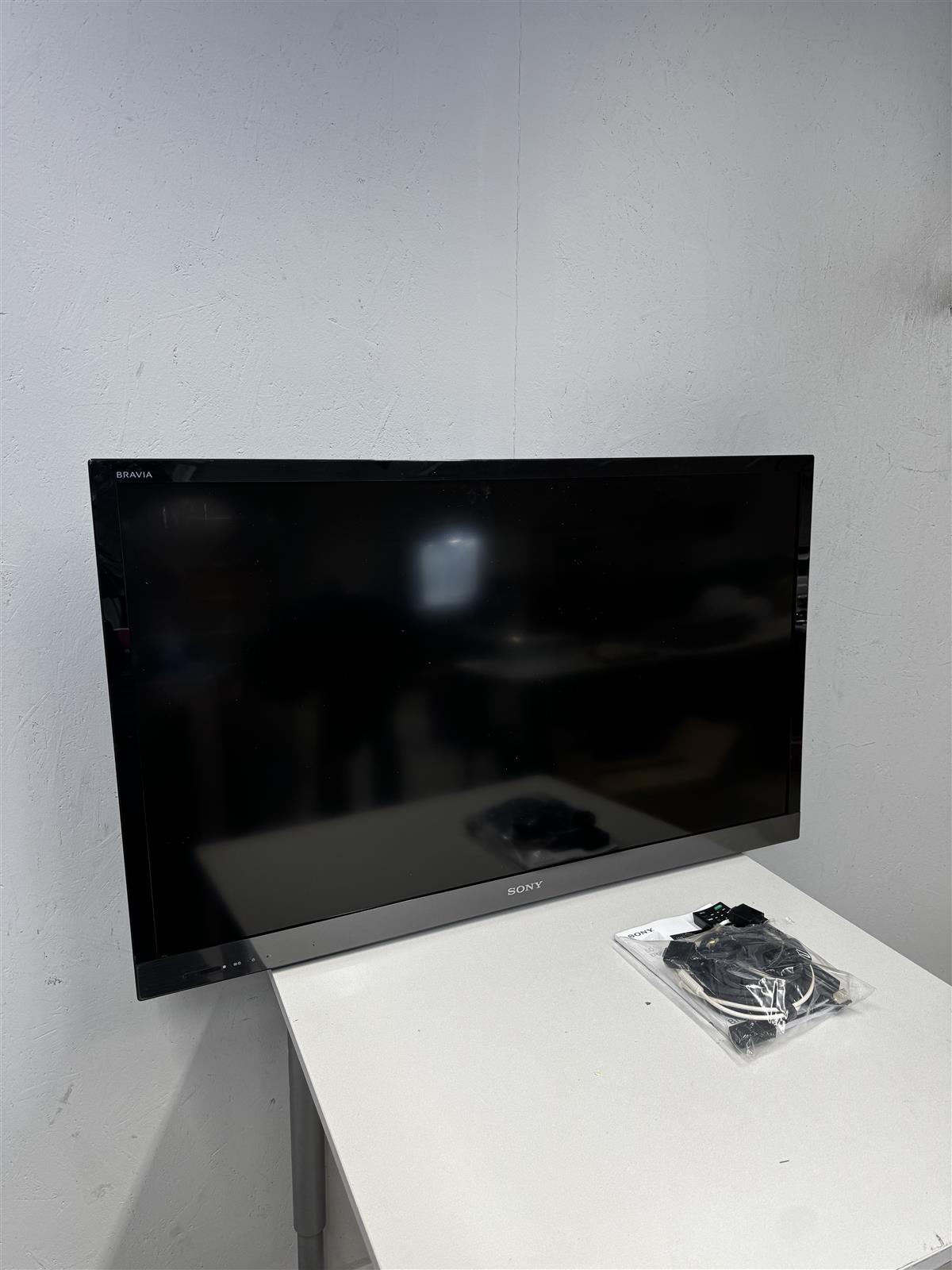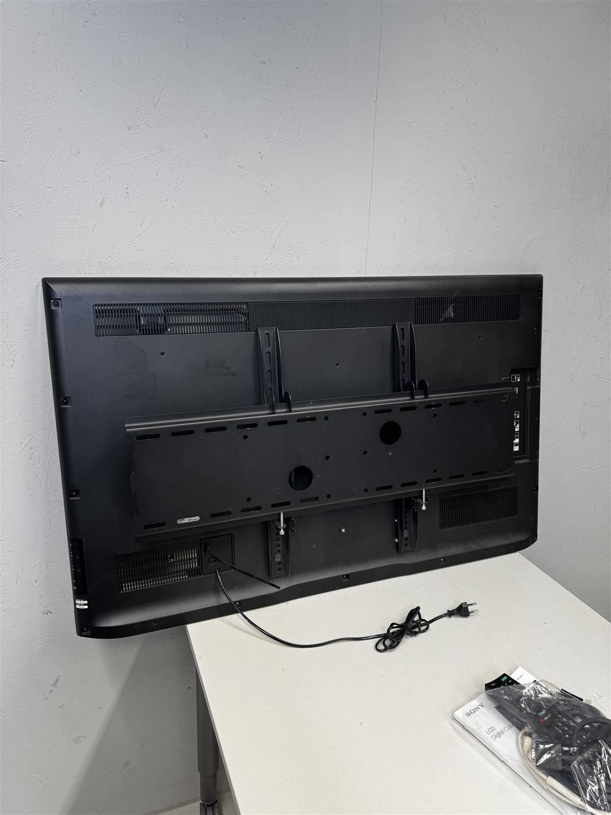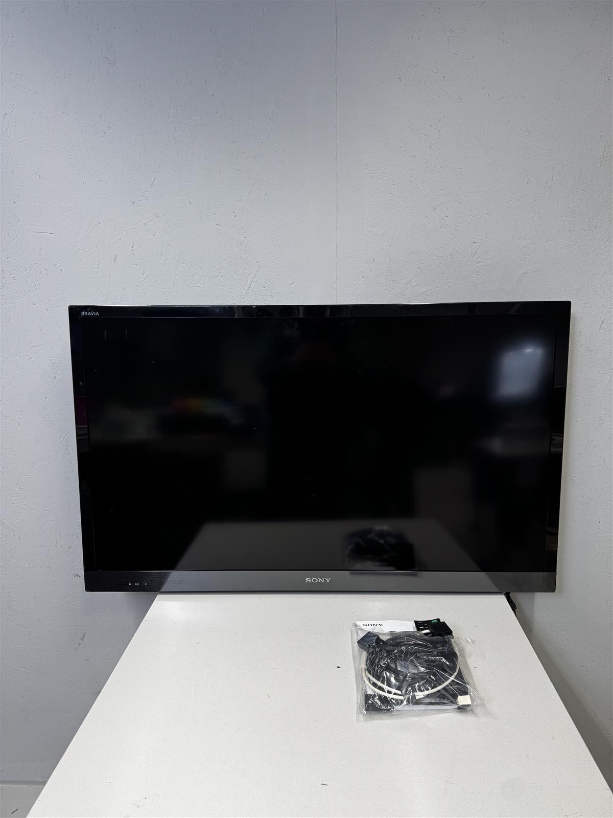 Sony KDL-46EX524 televisio. Mukana kaukosäädin, seinäteline ja tarvittavat kaapelit. Näytön koko 46 tuumaa, ja siinä on useita liitäntämahdollisuuksia, kuten HDMI ja USB.