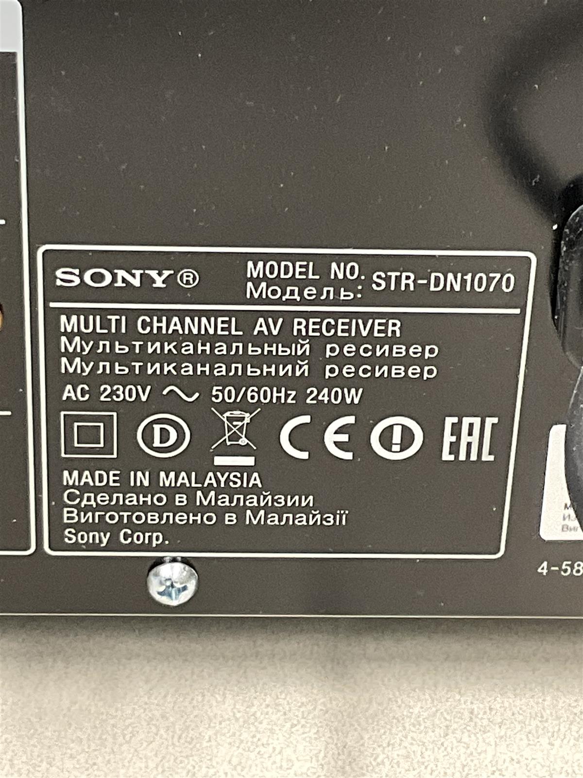 Sony STR-DN1070 7.2-kanavainen AV-vahvistin tarjoaa monikanavaisen äänentoiston ja tukee useita liitäntävaihtoehtoja, kuten HDMI ja optinen sisääntulo. Mukana tulee kaukosäädin ja käyttöohjeet.