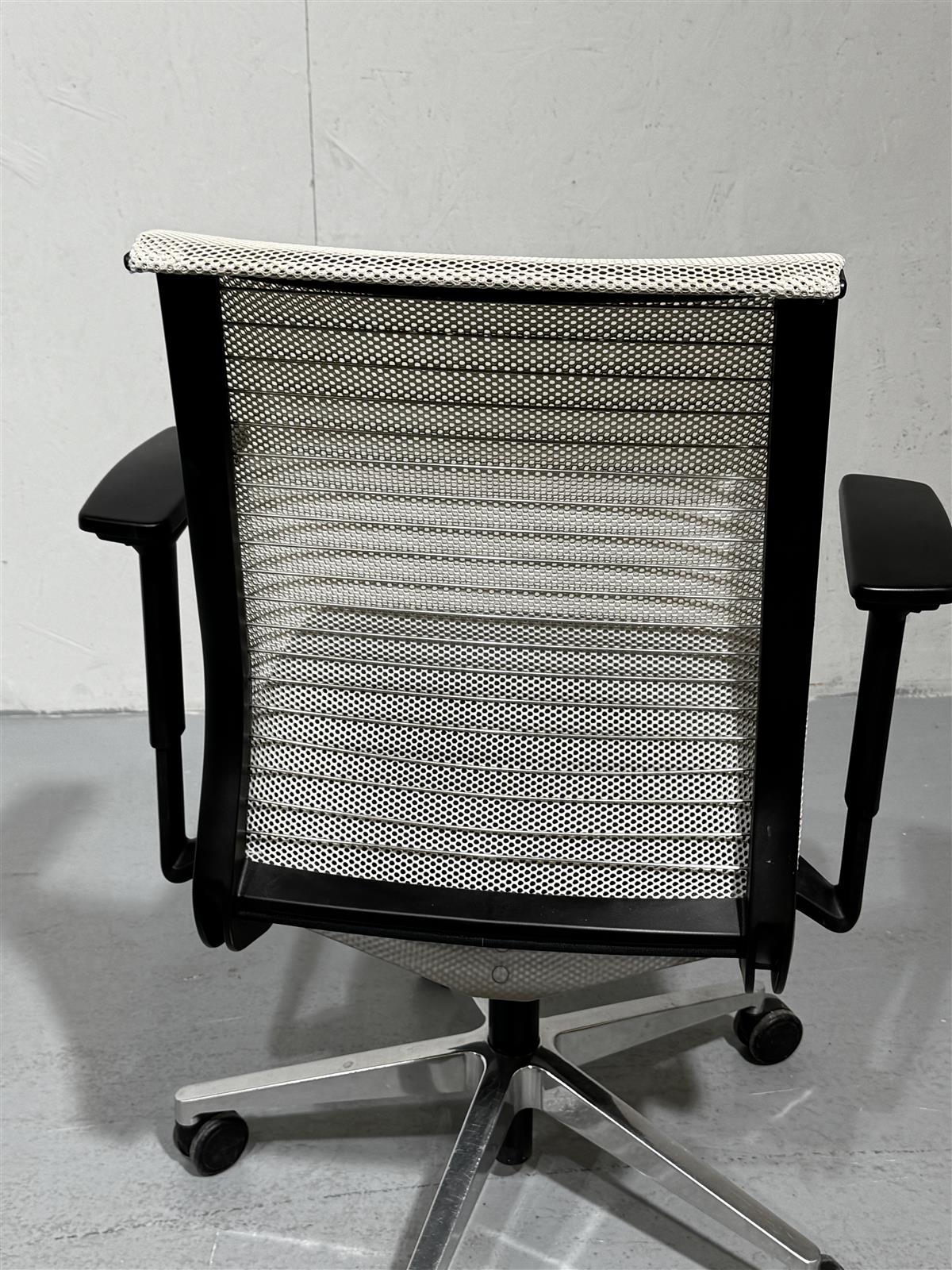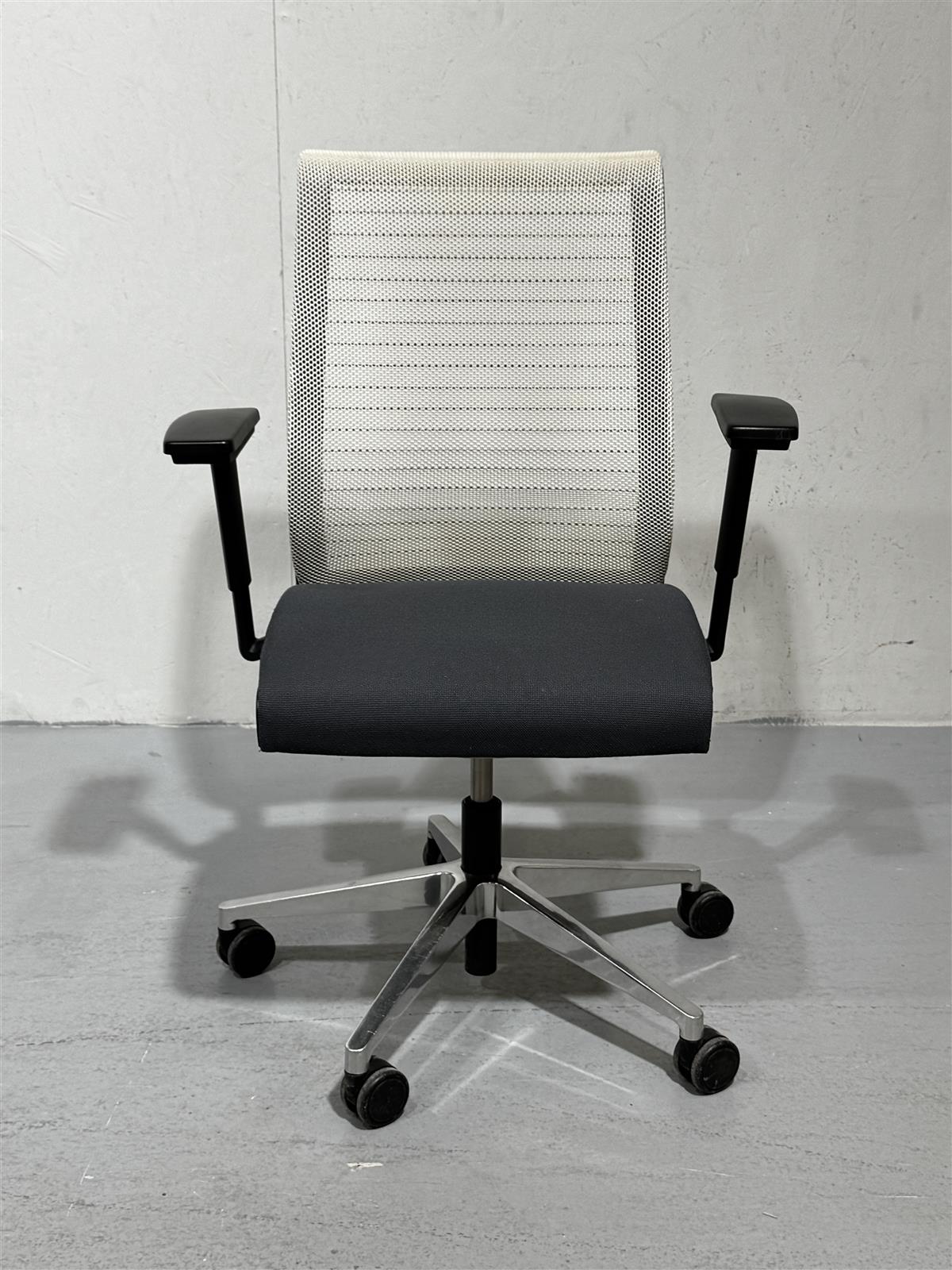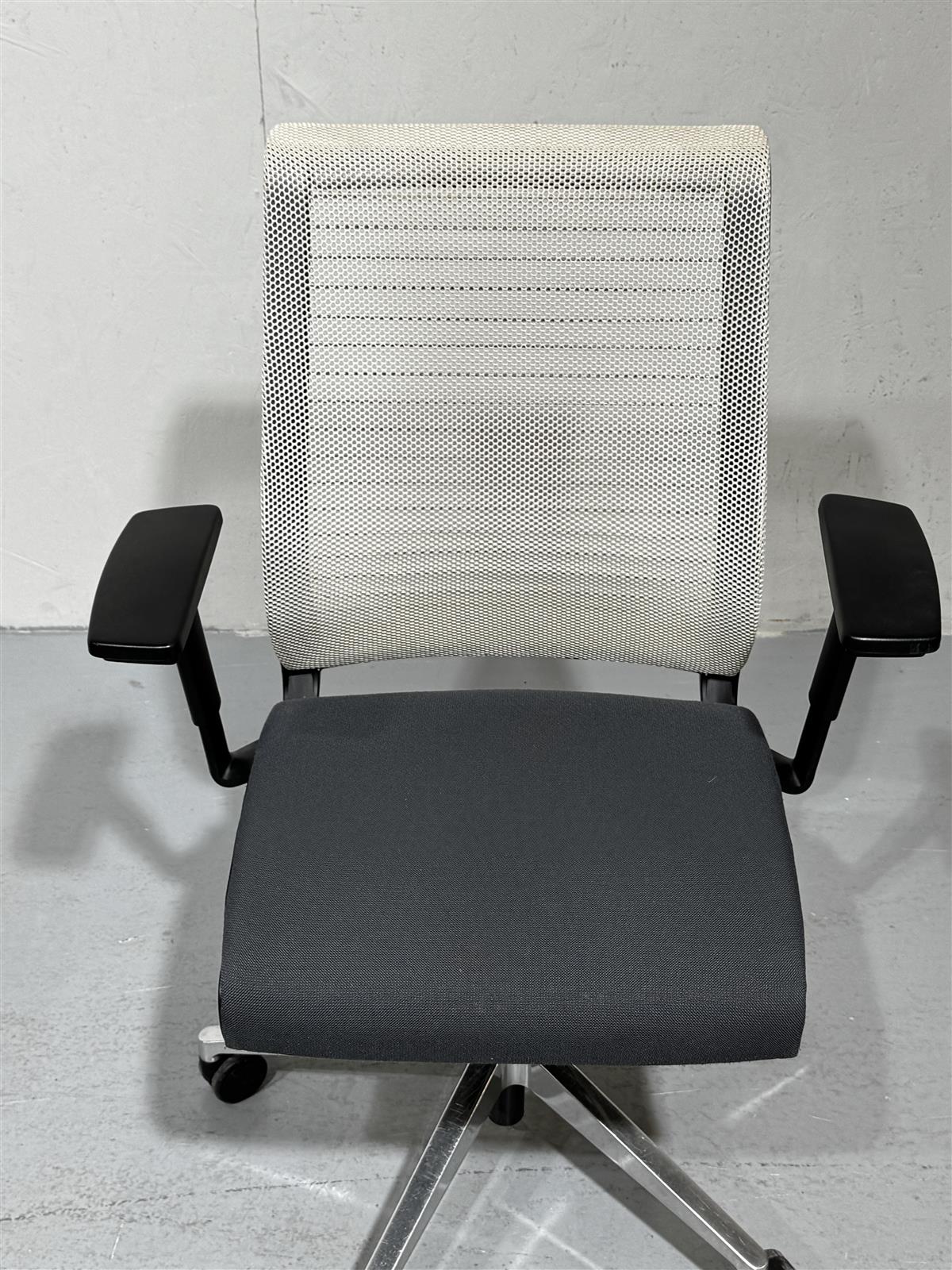 Steelcase Think on ergonominen työtuoli, jossa on säädettävät käsinojat ja hengittävä selkänoja. Tuolissa on viisi pyörää, jotka helpottavat liikkumista työpisteen ympärillä.