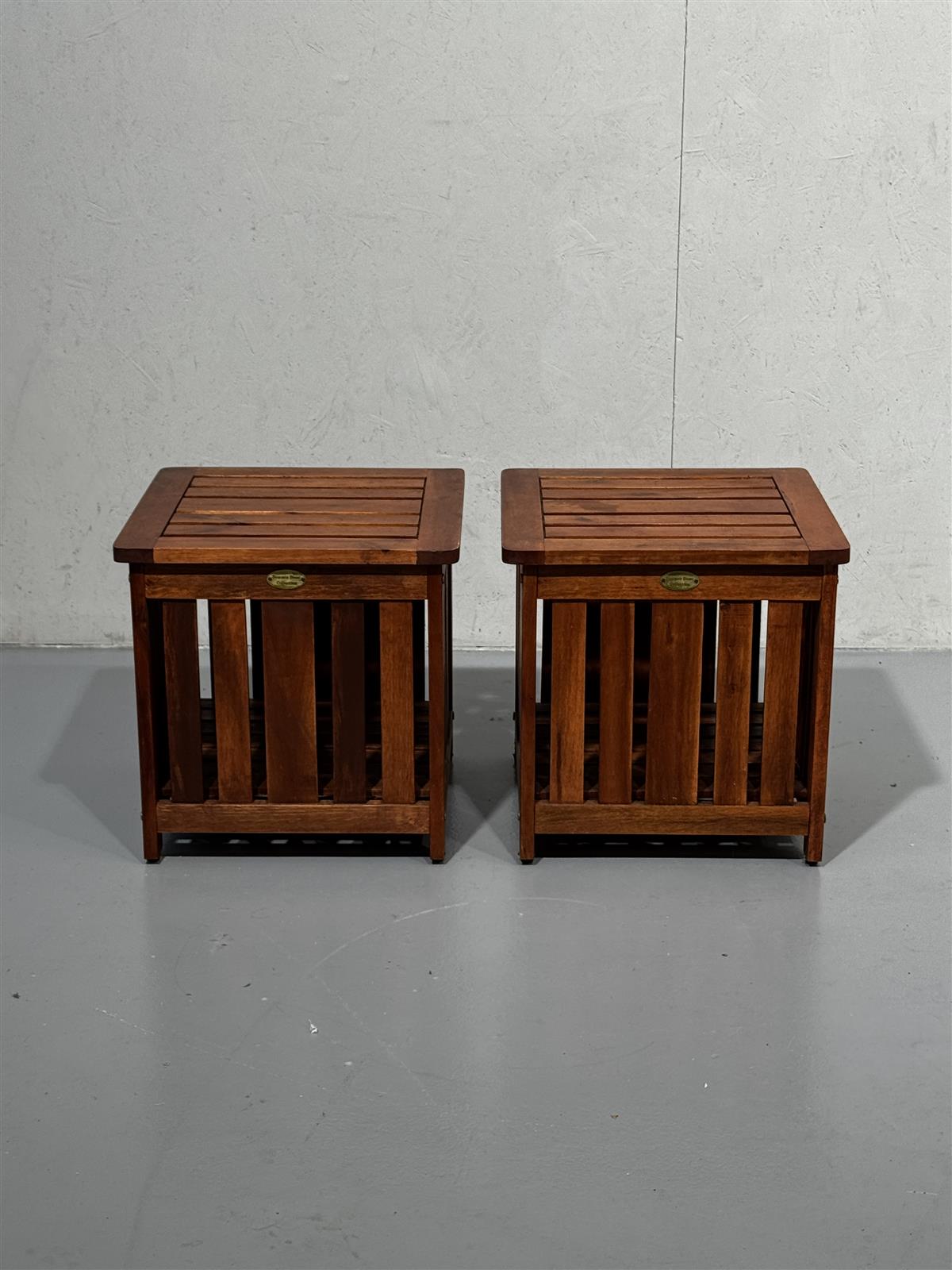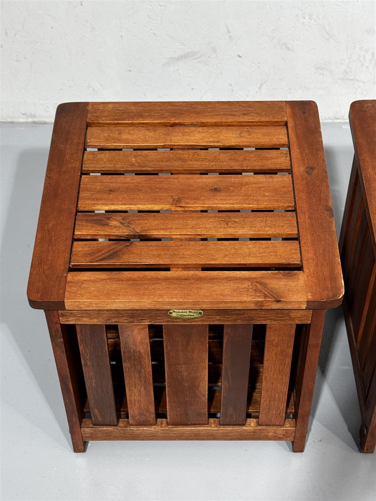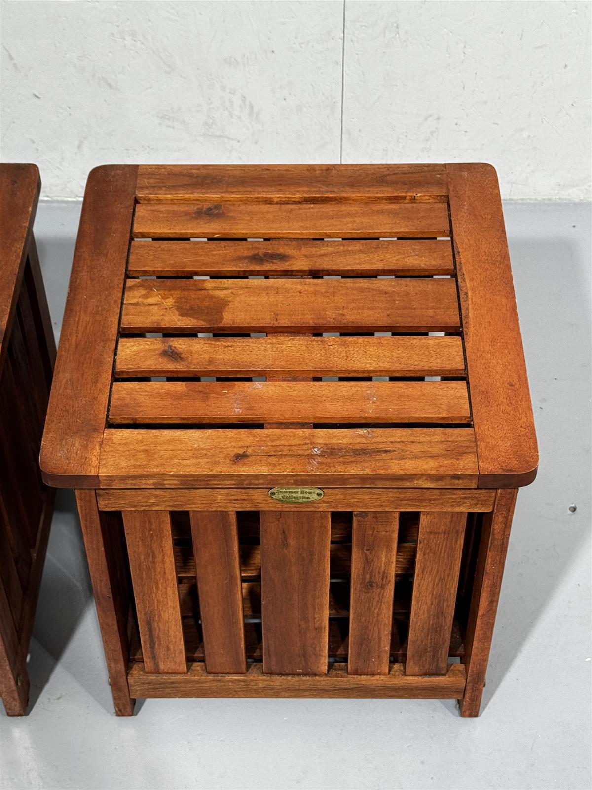 Kaksi säilytyslaatikkoa, jotka sopivat myös penkeiksi. Laatikoissa on puinen säleikkö ja avattava kansi. Laatikot ovat osa Summer Home Collection -sarjaa ja laadukasta puuta.