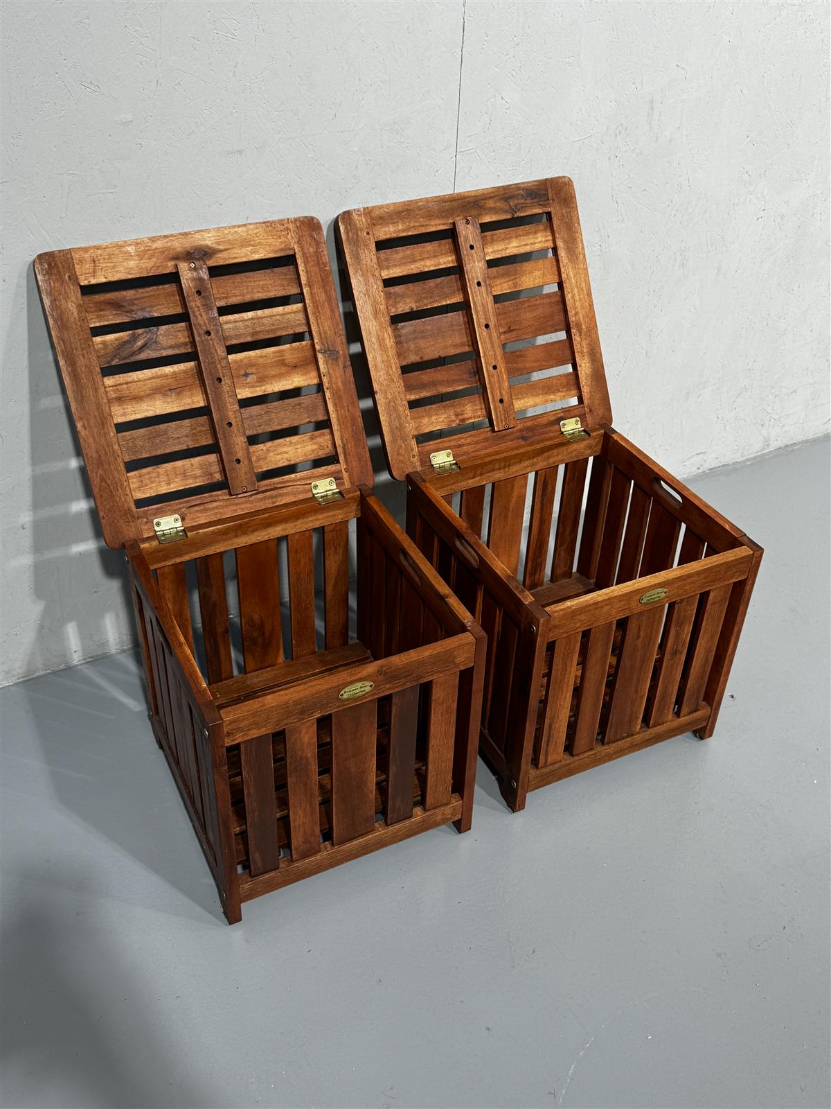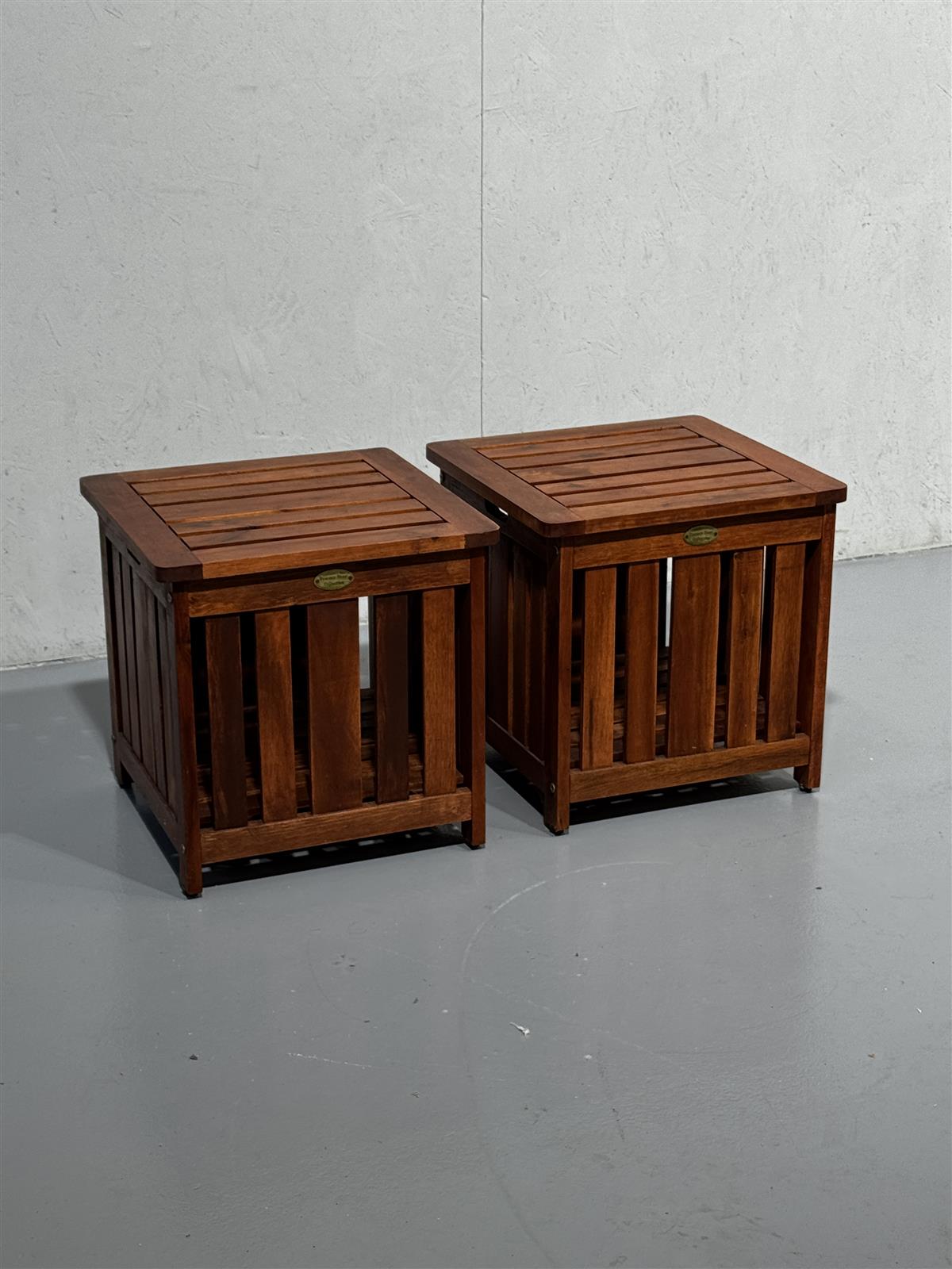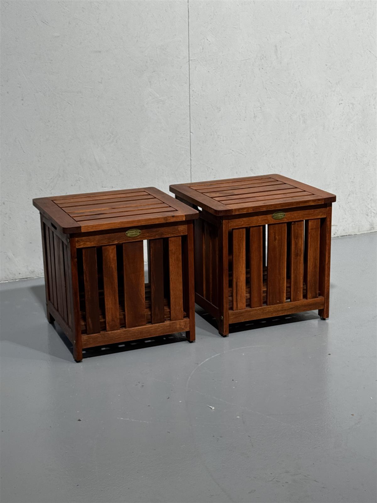 Kaksi säilytyslaatikkoa, jotka sopivat myös penkeiksi. Laatikoissa on puinen säleikkö ja avattava kansi. Laatikot ovat osa Summer Home Collection -sarjaa ja laadukasta puuta.
