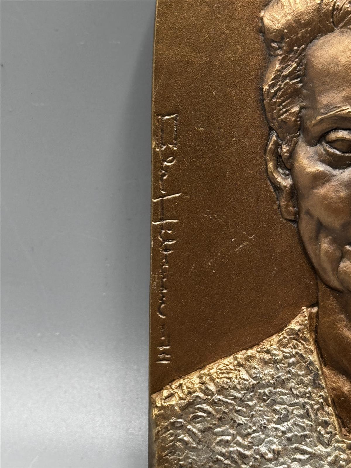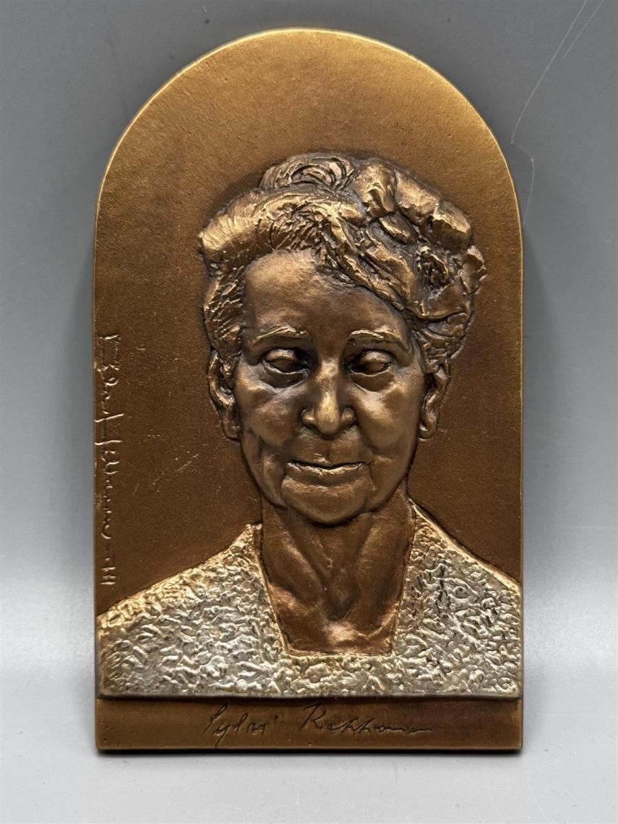 Tämä on tyylikäs pronssinen reliefi Sylvi Kekkosesta, jossa on yksityiskohtainen muotokuva. Reliefi on valmistettu vuonna 1974, ja siinä on kaiverrus Eila Hiltunen. Valmistaja Tillander.