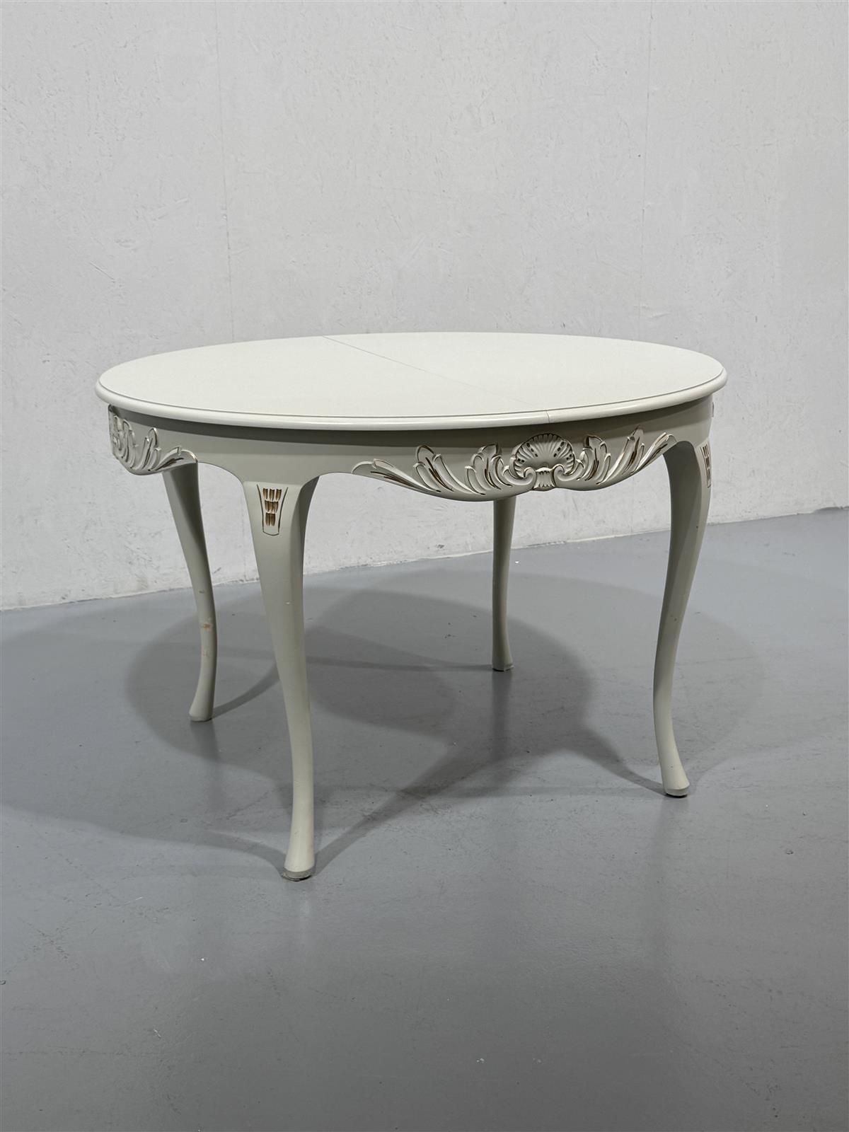 Suomalaisen Tyylihuonekalutehdas Vinni & Co valmistama, laadukas talonpoikaisrokokoo tyylin pyöreä ruokapöytä 110cm. Hyvässä kunnossa pinnat, vähäistä käytön jälkeä reunoilla.
