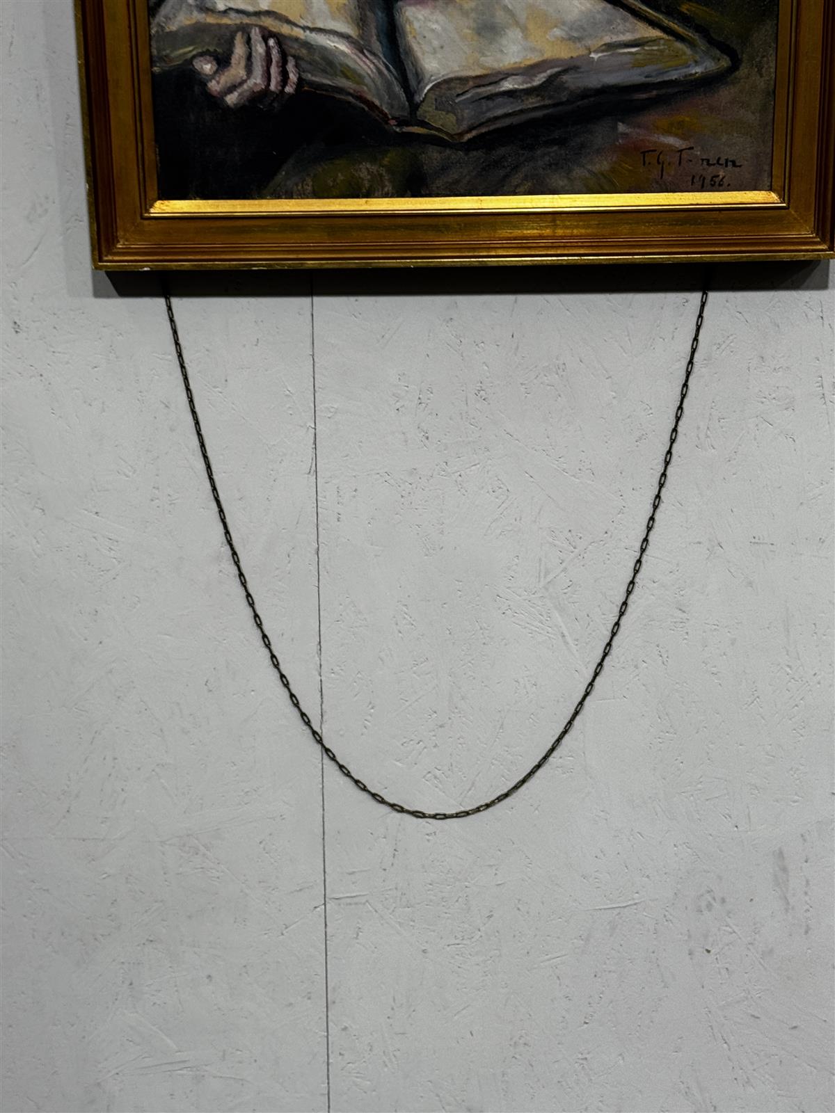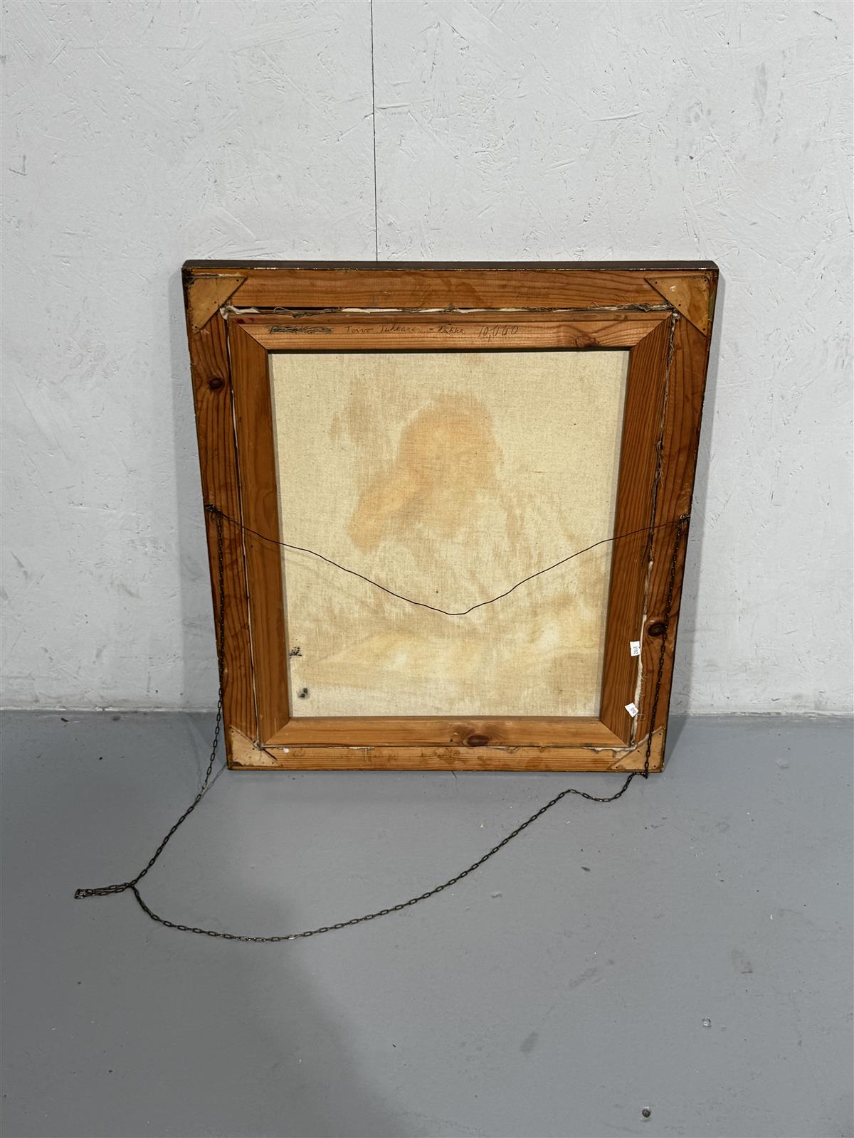 Kehyksessä on havaittavissa pientä kulumaa, mutta maalaus on muuten hyvässä kunnossa. Mukana taakse kiinnitetty pitempi ketju.