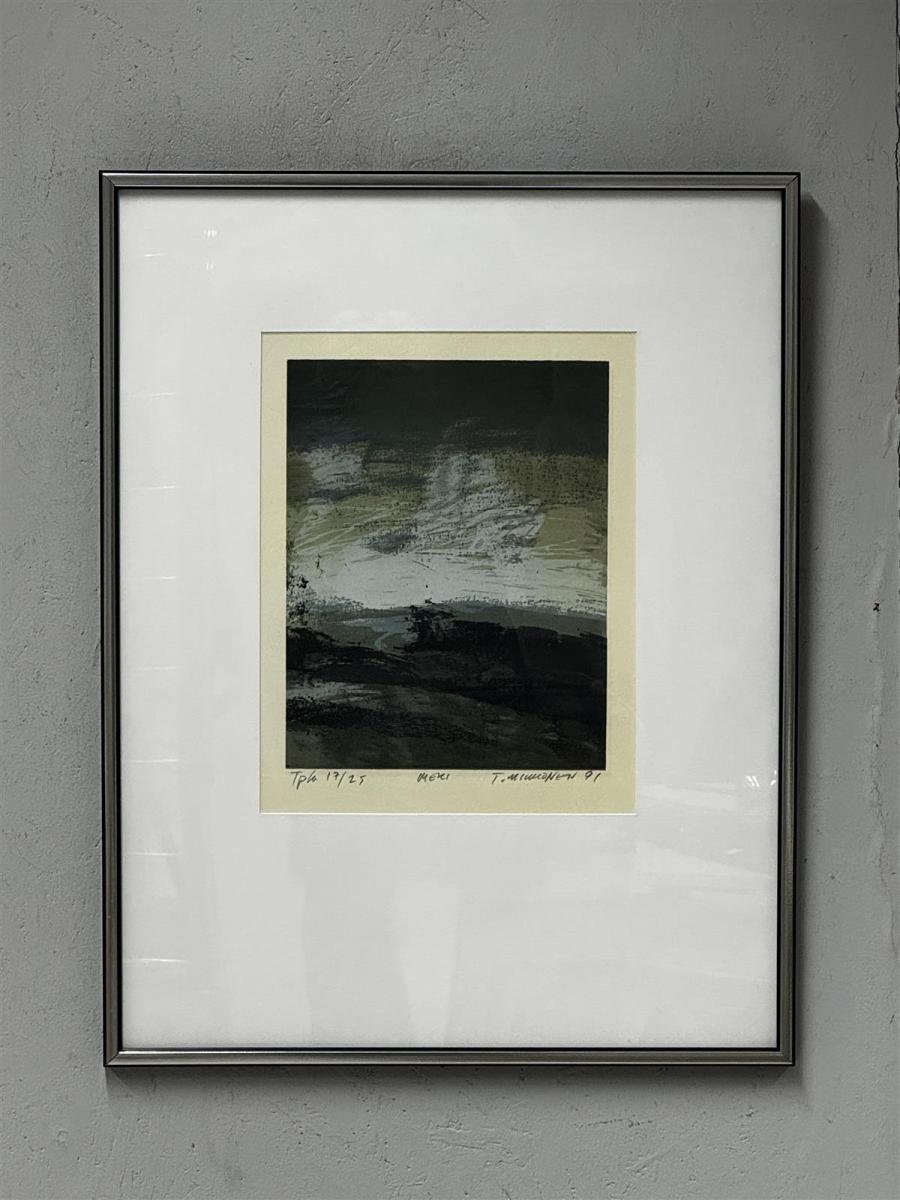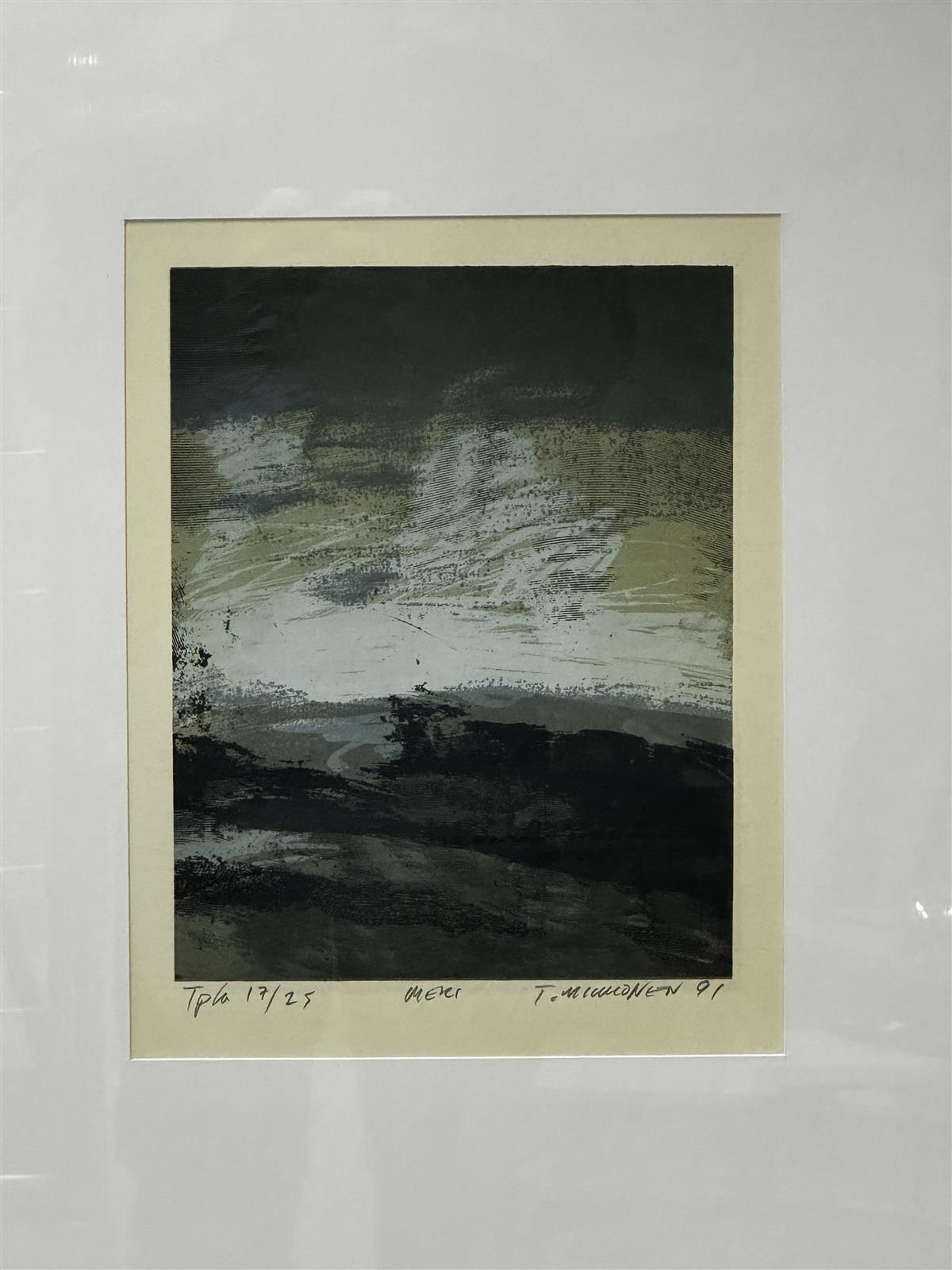 Meri niminen grafiikkateos on signeerattu T. Mikkonen (Tapani Mikkonen) ja päivätty vuodelle 1991. Teos on numeroitu 17/25, mikä viittaa rajoitettuun painokseen.