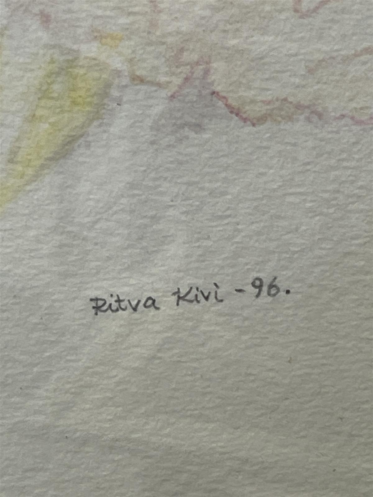 Taulu ”Kukat” vesiväriteos. Signeeraus Ritva Kivi -96