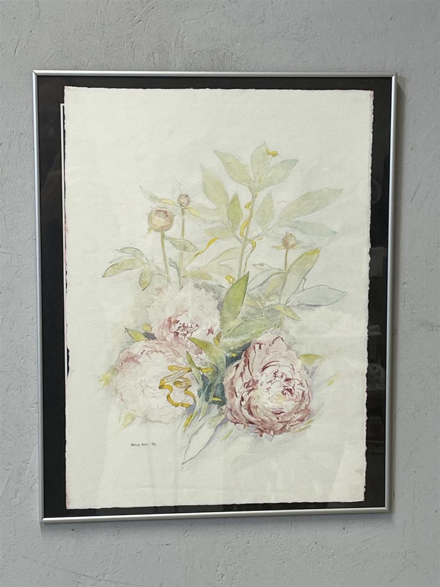 Taulu ”Kukat” vesiväriteos, Ritva Kivi -96