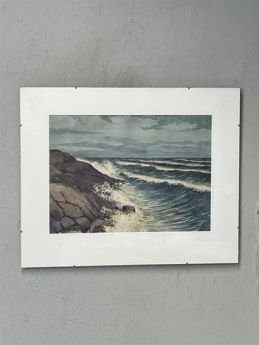Taulu merimaisema teos. Signeeraus M. Miikkola, Rovasti 50.