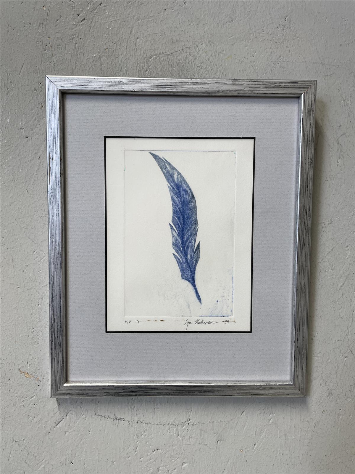 Taulu ”Sininen sulka” teos. Signeeraus Huttunen (etunimi epäselvä) -99