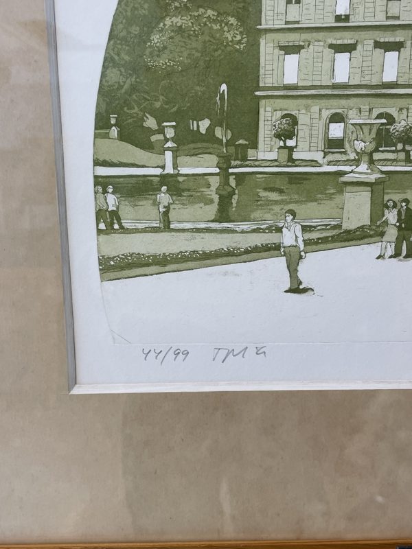 Taulu värillinen viivasyövytys Veikko Lehtovaara 1976